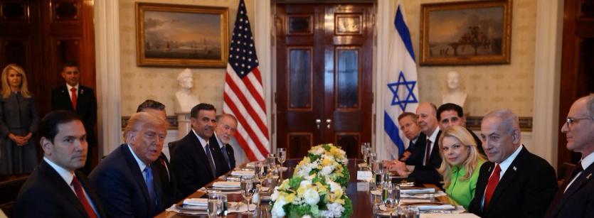وبينما كانت التقديرات المتفائلة تتجه نحو انتظار إعلانٍ دراماتيكي من الرئيس ترمب، بنجاحه في التوصل إلى الصفقة التي تُنسب إلى مبعوثه ويتكوف، أُعدّت مأدبةٌ احتفالية تجاوزت المعتاد في اللقاءات الرسمية، التي غالباً ما تتم في المكتب البيضاوي، ما اعتبر تكريماً خاصاً لنتنياهو، وتمهيداً للمحادثات الرسمية التي من المقرر أن تتم في وقتٍ لاحق.