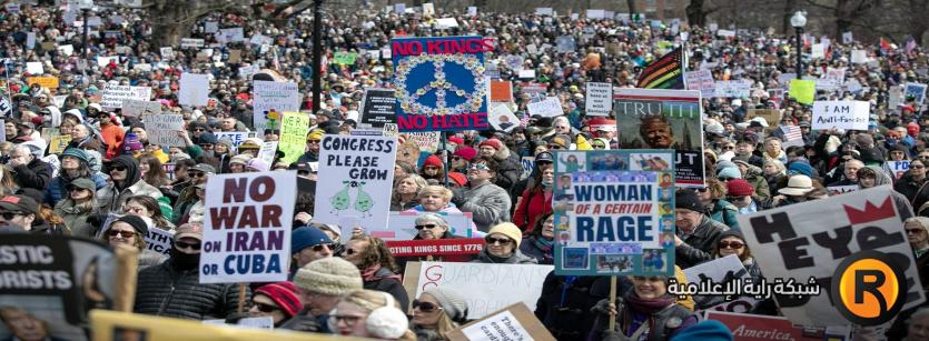 وفي هذه الحرب انقسمت أمريكا مناصفةً بين الحزبين الرئيسيين فيها إضافةً إلى انقسامٍ أوسع وأعمق، على الصعيد الشعبي العام، لم تعد تُظهره استطلاعات الرأي فقط، بل التظاهرات الشعبية التي انطلقت في العديد من الولايات منددةً بالحرب ومطالبةً بوقفها.