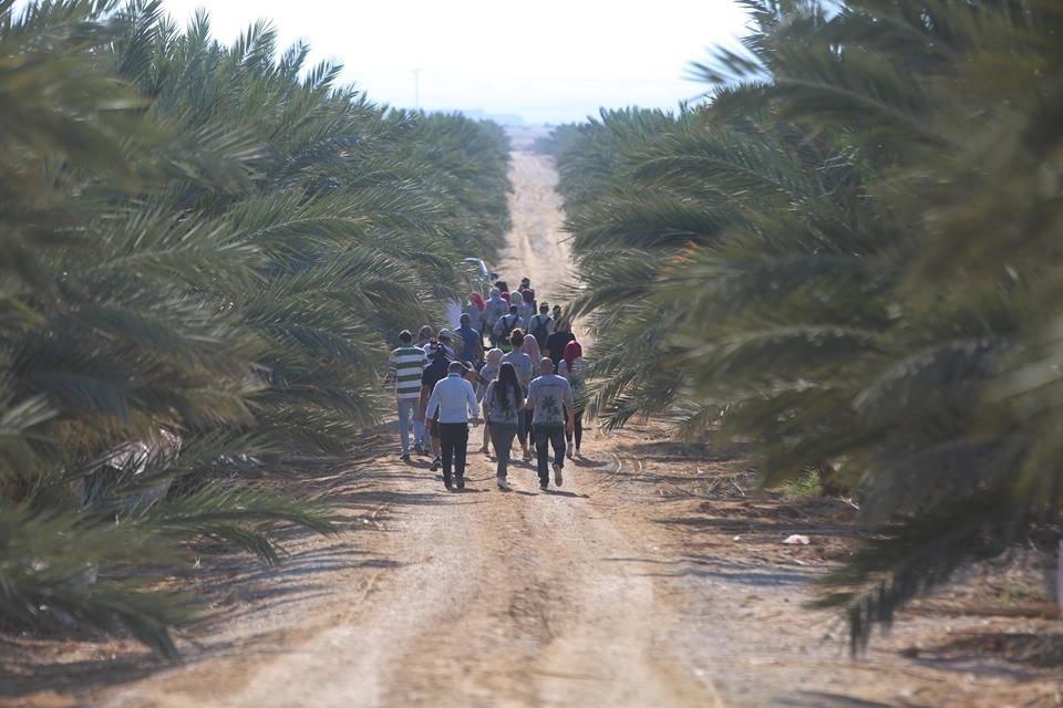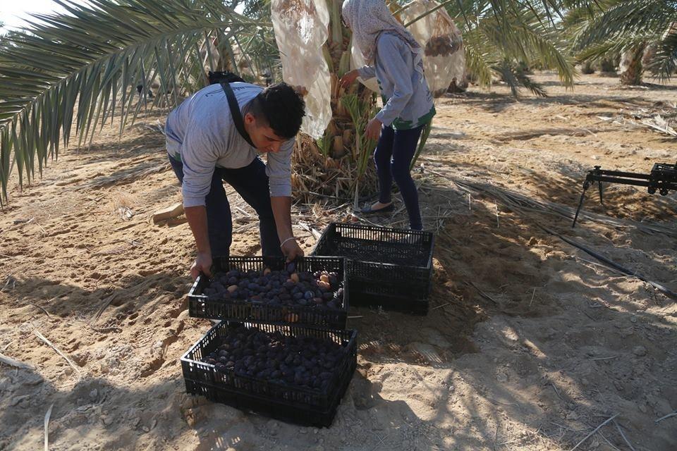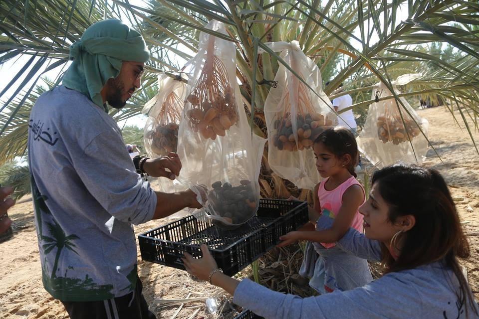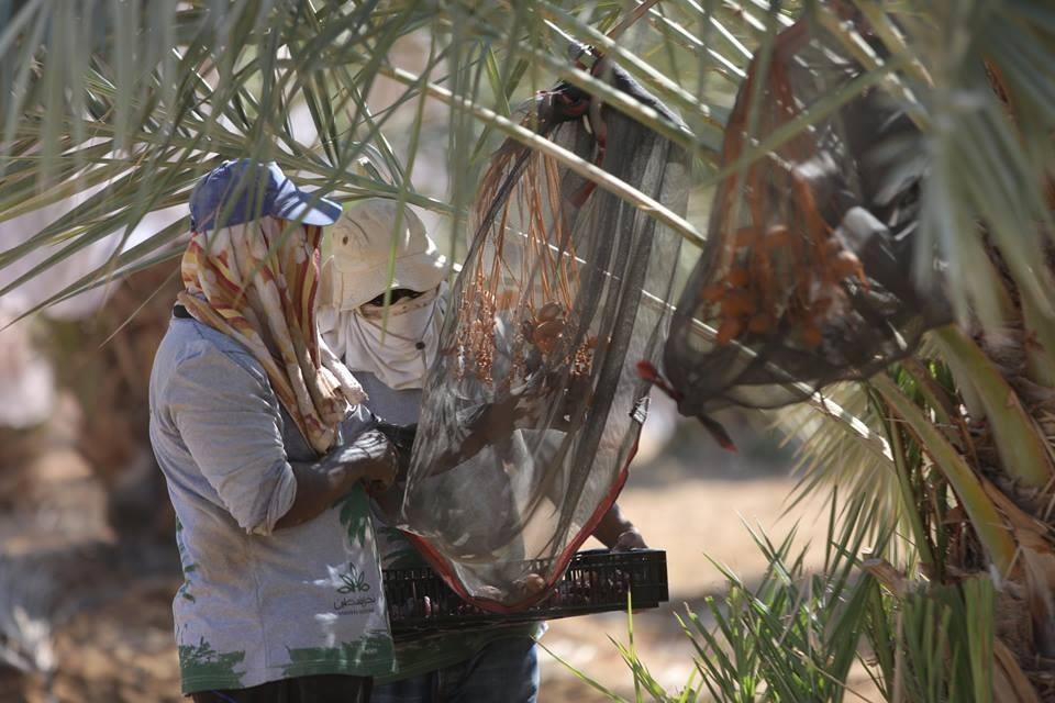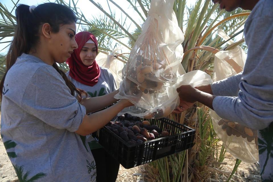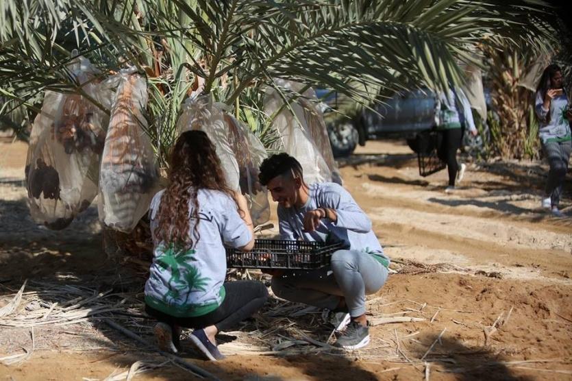متطوعون من القدس ورام الله يقطفون ثمار النخيل في مزارع مدينة أريحا
