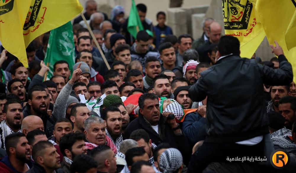 جماهير نابلس تشيع جثمان الشهيد قينو في عراق بورين