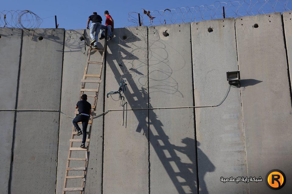 مواطنون يتسلقون جدار الفصل لاداء صلاة الجمعة الاخيرة في الاقصى