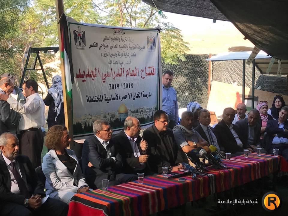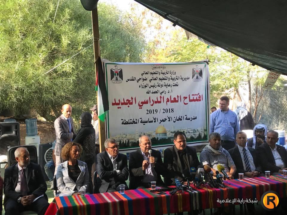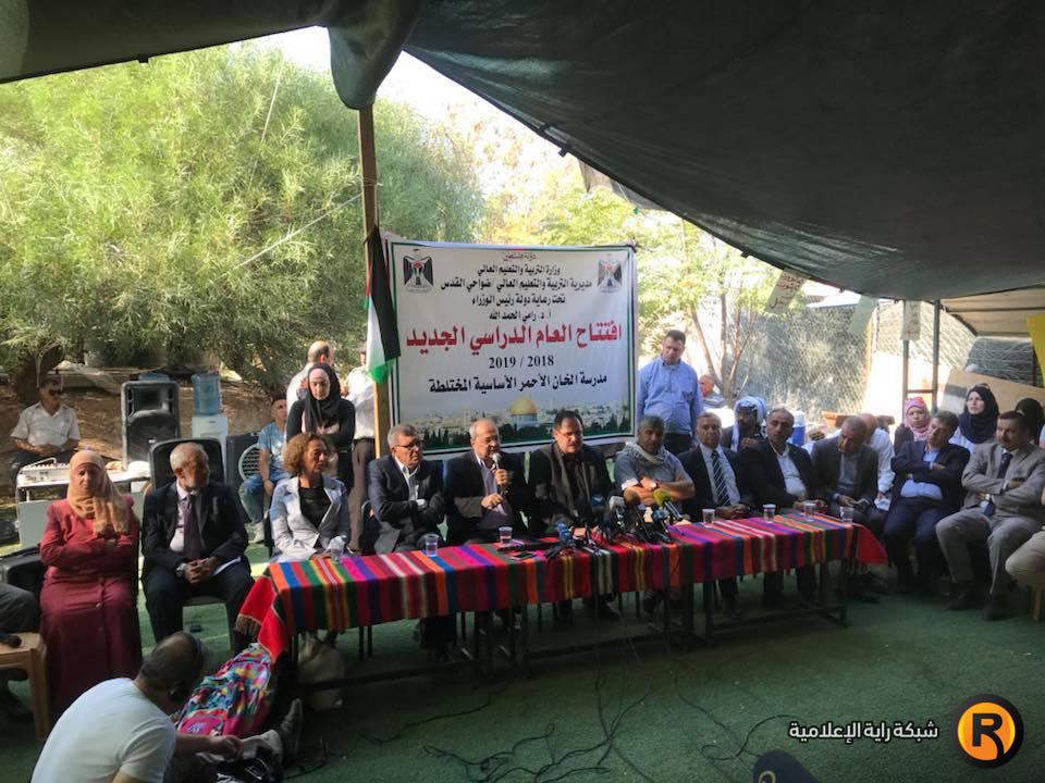 افتتحت وزارة التربية والتعليم العام الدراسي الجديد في قرية الخان الأحمر شرق القدس المحتلة، وذلك في قرار جاء بهدف تعزيز صمود أهلها.