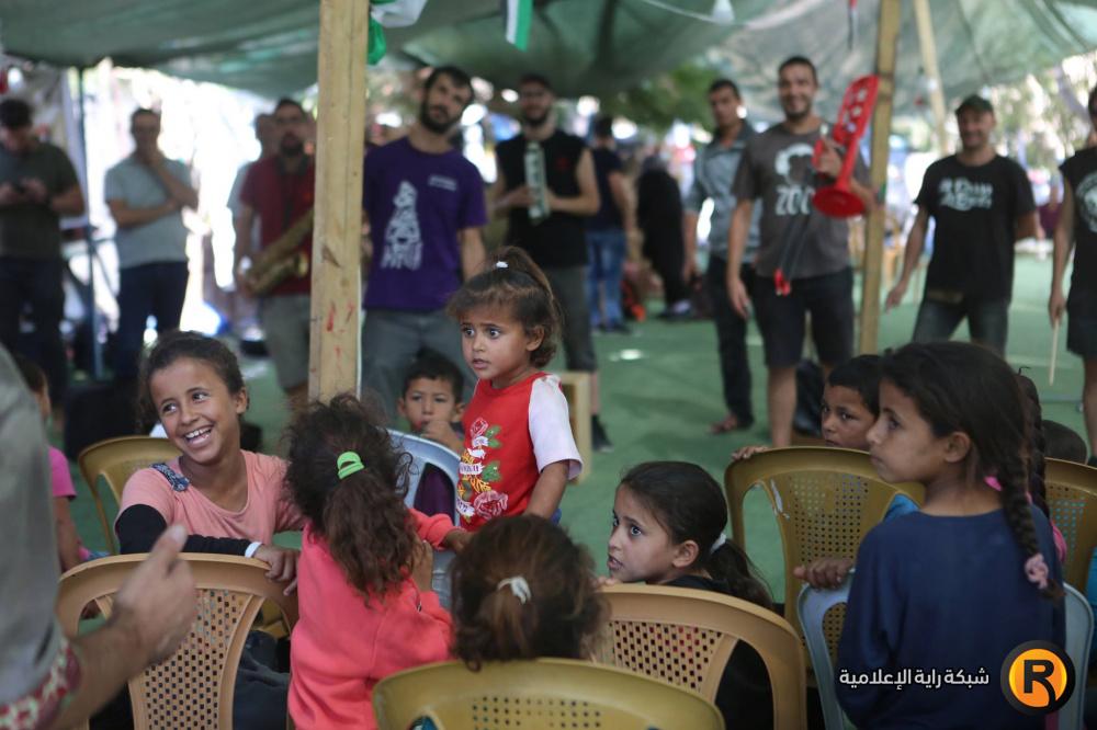 فرقة إسبانية تقدم عرضا للاطفال في قرية الخان الاحمر