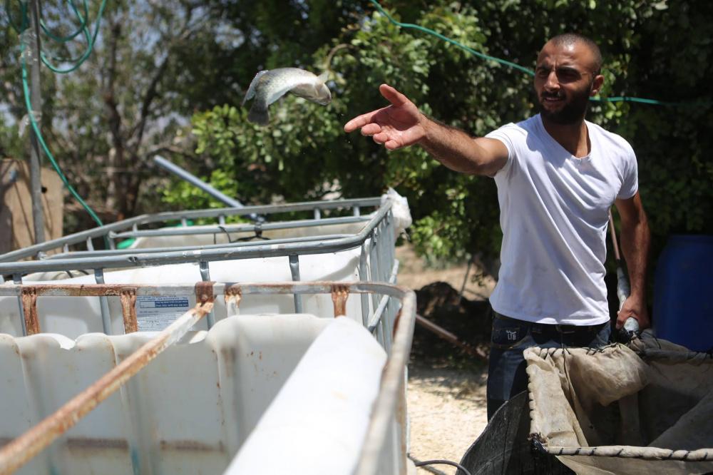المهندس الزراعي جعفر حمد قرر أن يربي الاسماك في منزله في بلدة تل قرب نابلس.
