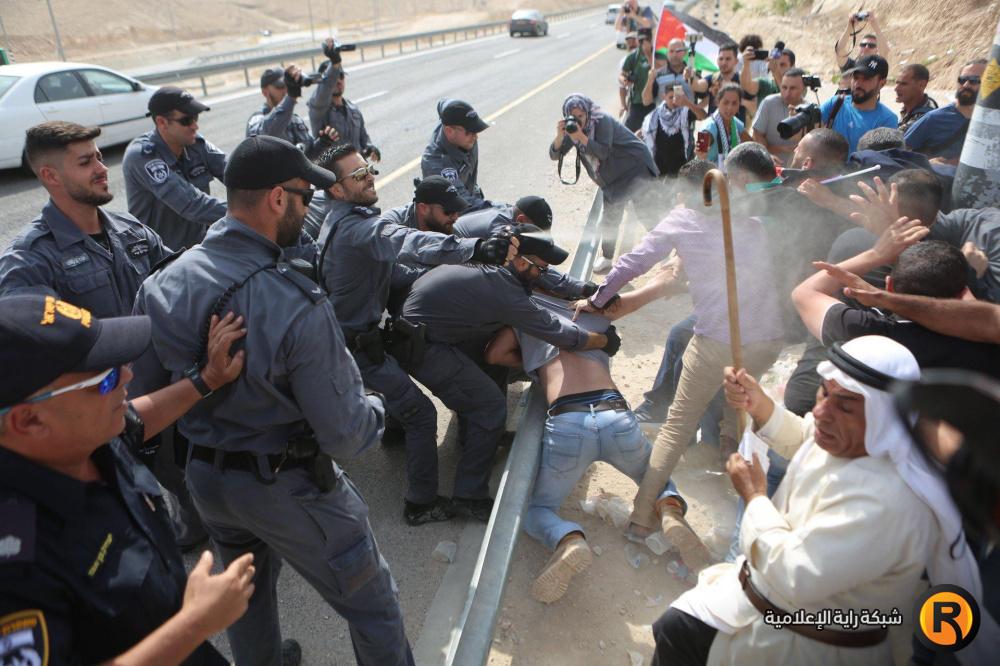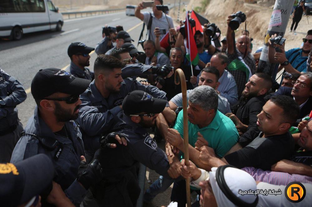اصابة عدد من المواطنين بينهم الوزير وليد عساف بالاختناق واعتقال مرافقه خلال قمع الاحتلال مسيرة الخان الاحمر