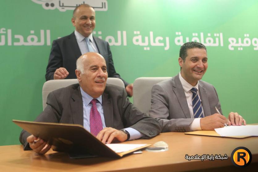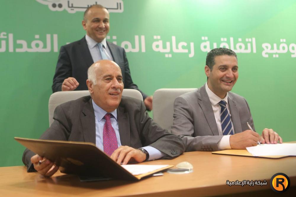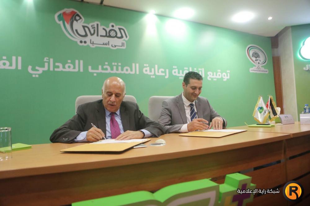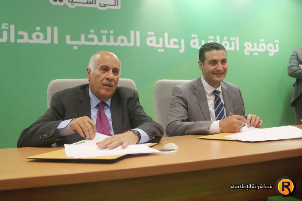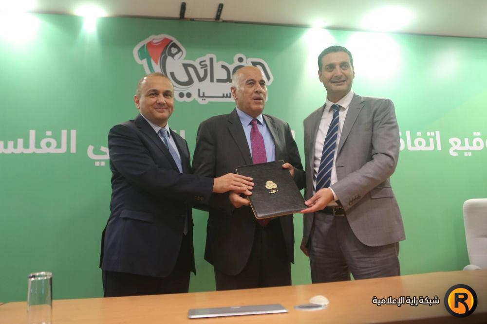 وجرى التوقيع بحضور رئيس الاتحاد الفلسطيني لكرة القدم اللواء جبريل الرجوب.