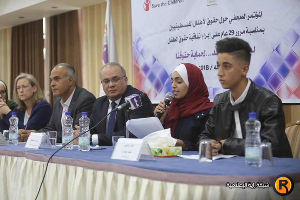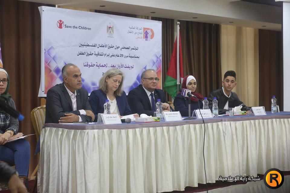 فعاليات المؤتمر الصحفي الخاص بمرور 29 عاما على ابرام اتفاقية الطفل والذي تشارك فيه الوزارة ممثلة بالوزير د. ابراهيم الشاعر، وبتنظيم من الحركة العالمية للدفاع عن الاطفال ومشاركة مجلس اطفال فلسطين.