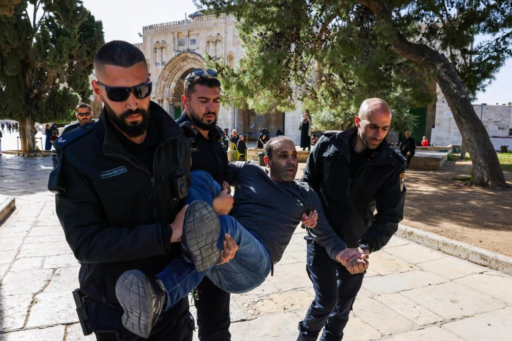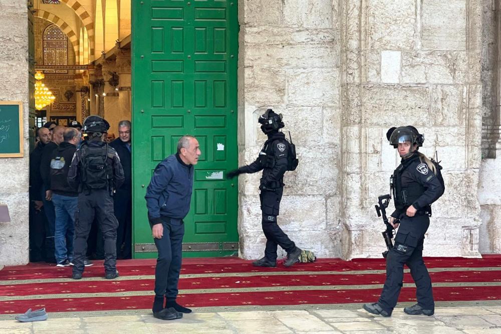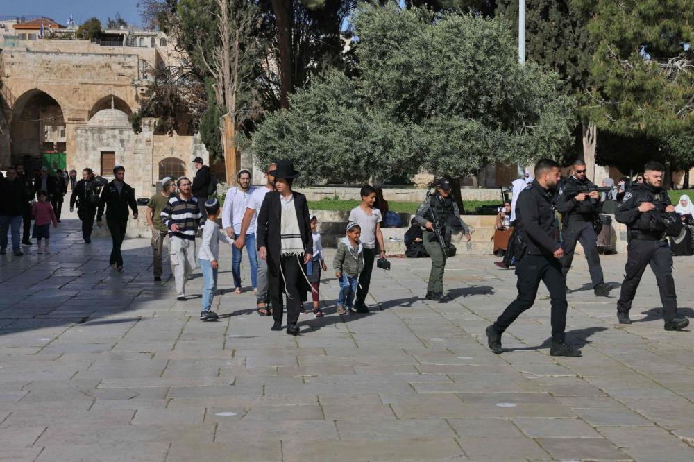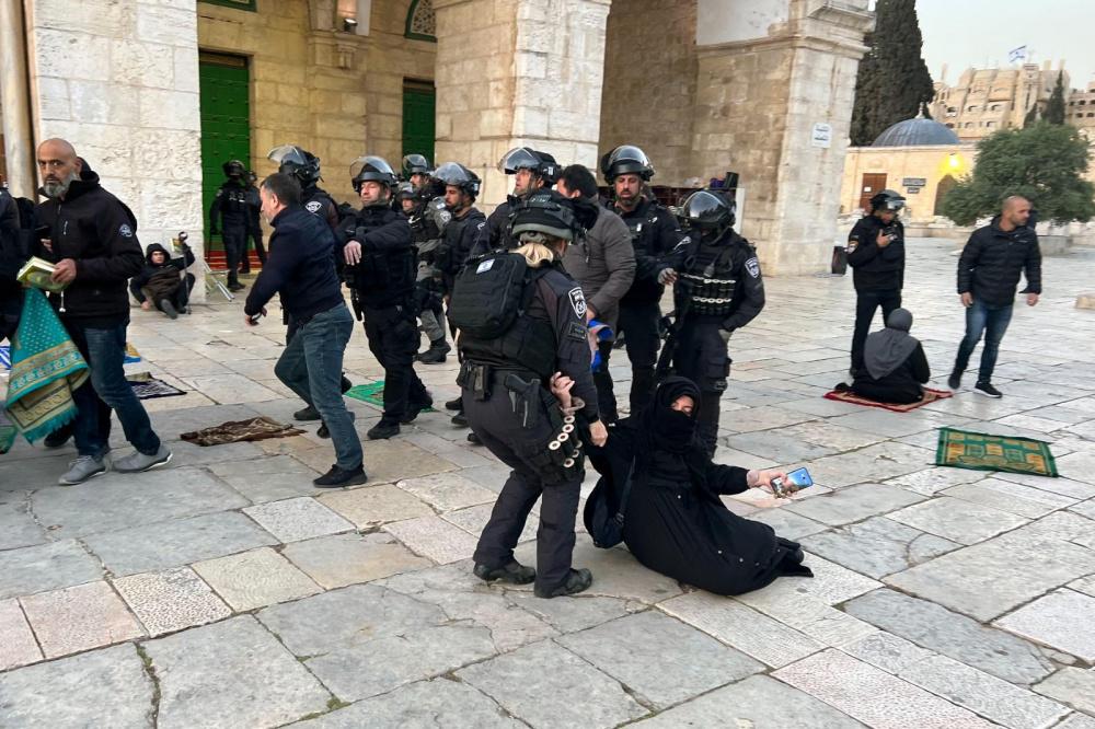 اقتحامات للمستوطنين واعتداءات على الحرائر والمعتكفين وإخراج بعضهم وعدوان سافر على المسجد الأقصى فجر يوم الأربعاء 5 ابريل 2023.