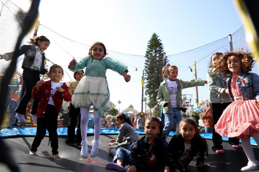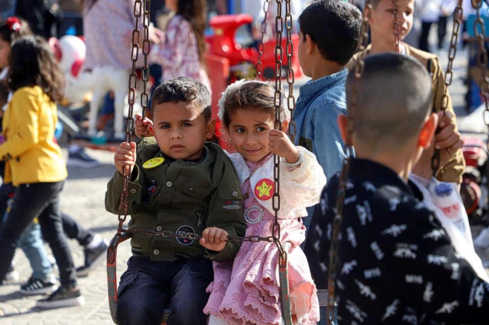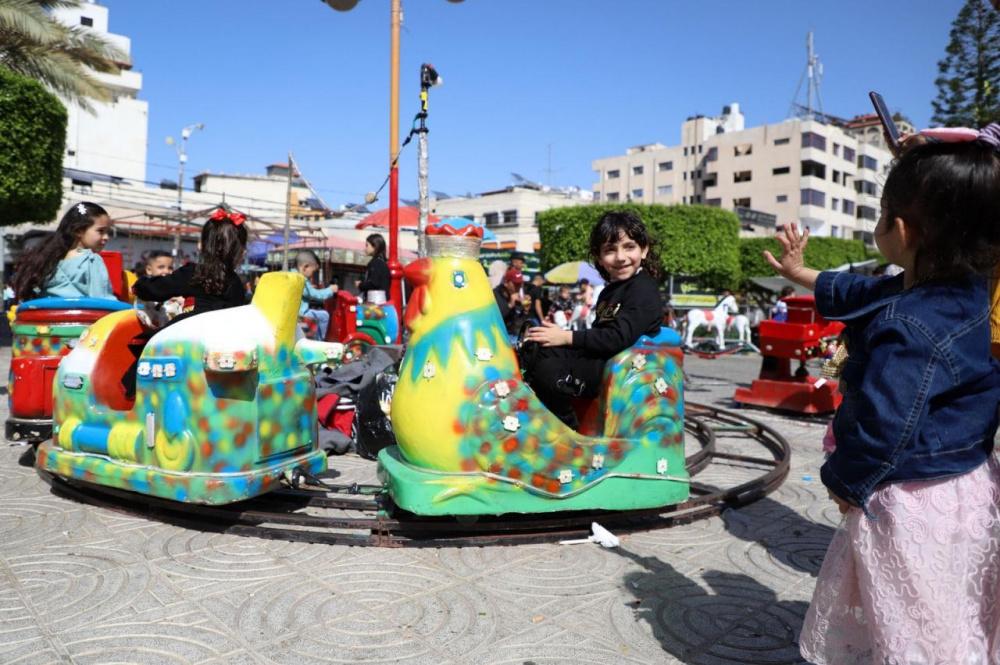 يحتفل الأطفال في قطاع غزة بعيد الفطر المبارك عقب شهر رمضان، حيث يصحبهم الأهالي إلى المنتزهات والأماكن العامة؛ من أجل الترفيه عن أنفسهم، في ظل الحصار الإسرائيلي المفروض على القطاع منذ أكثر من 16 عاما.
