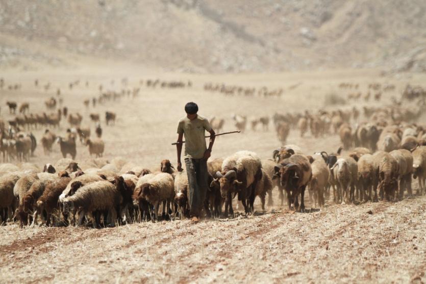 رجل يرعى الاغنام في قرية الجفتلك قرب وادي الاردن