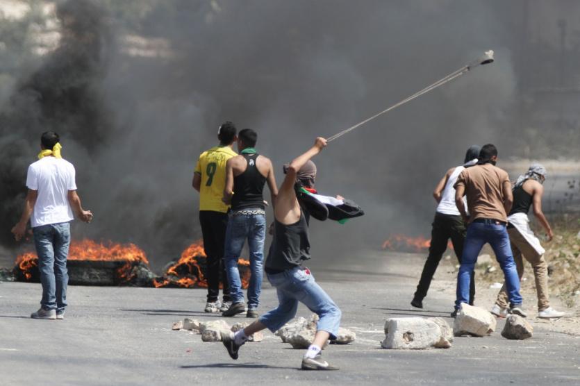 مواجهات امام سجن عوفر تضامننا مع غزة