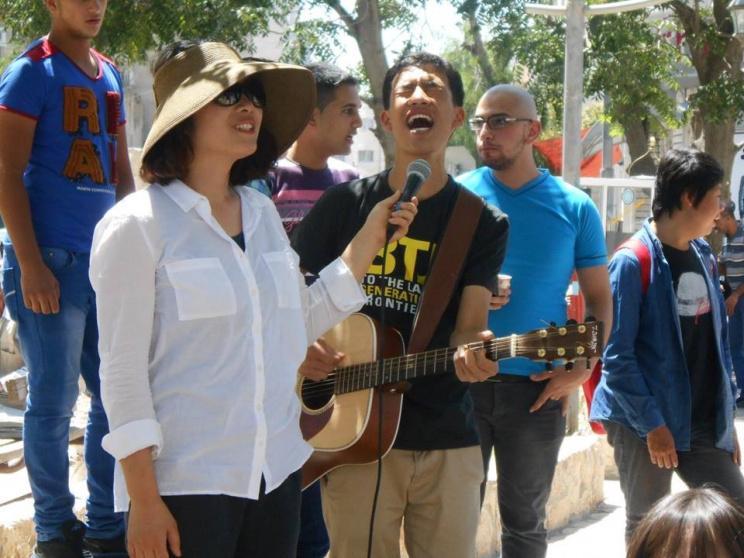 وفد كوري يتضامن بالأغنية مع غزة وسط الخليل
