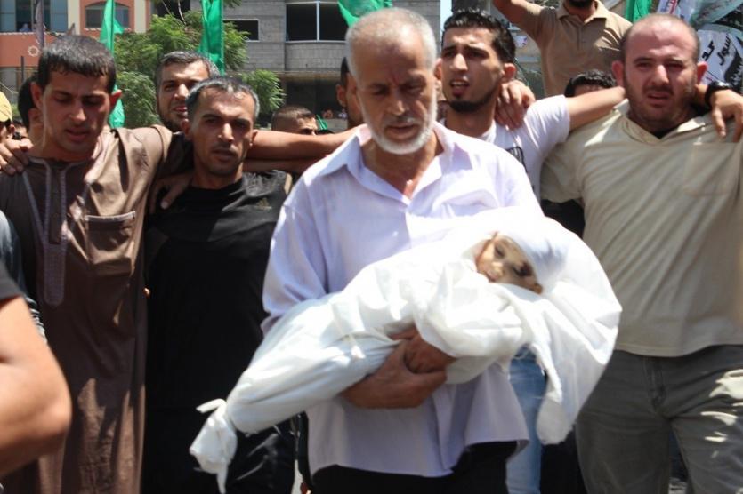 شيعت جماهير غفيرة شمال قطاع غزة بعد ظهر الأربعاء جثمان زوجة قائد كتائب القسام محمد الضيف وابنه الطفل علي.