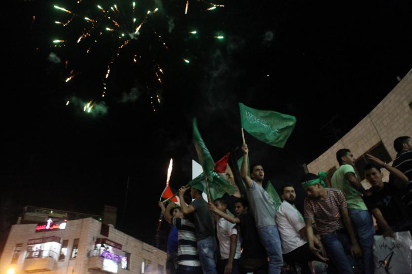 احتفالات بأعلان وقف اطلاق النار في رام الله