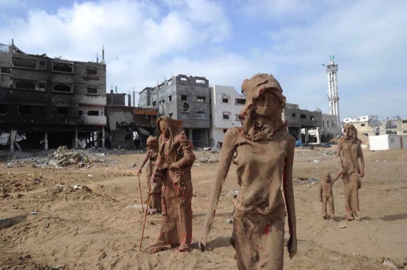 "تهالك الشجاعية" عمل تركيبي في الفضاء العام يرصد احداث الحرب برؤية تشكيلية معاصرة