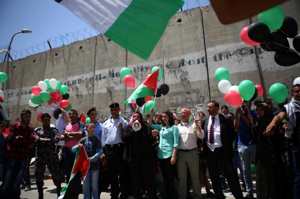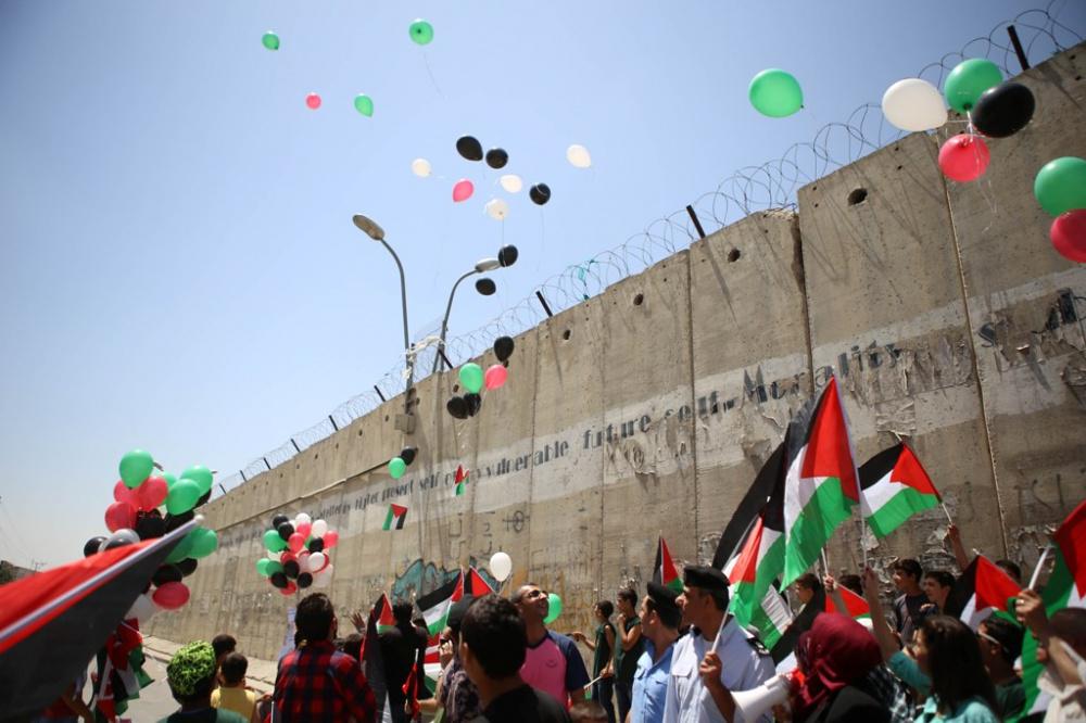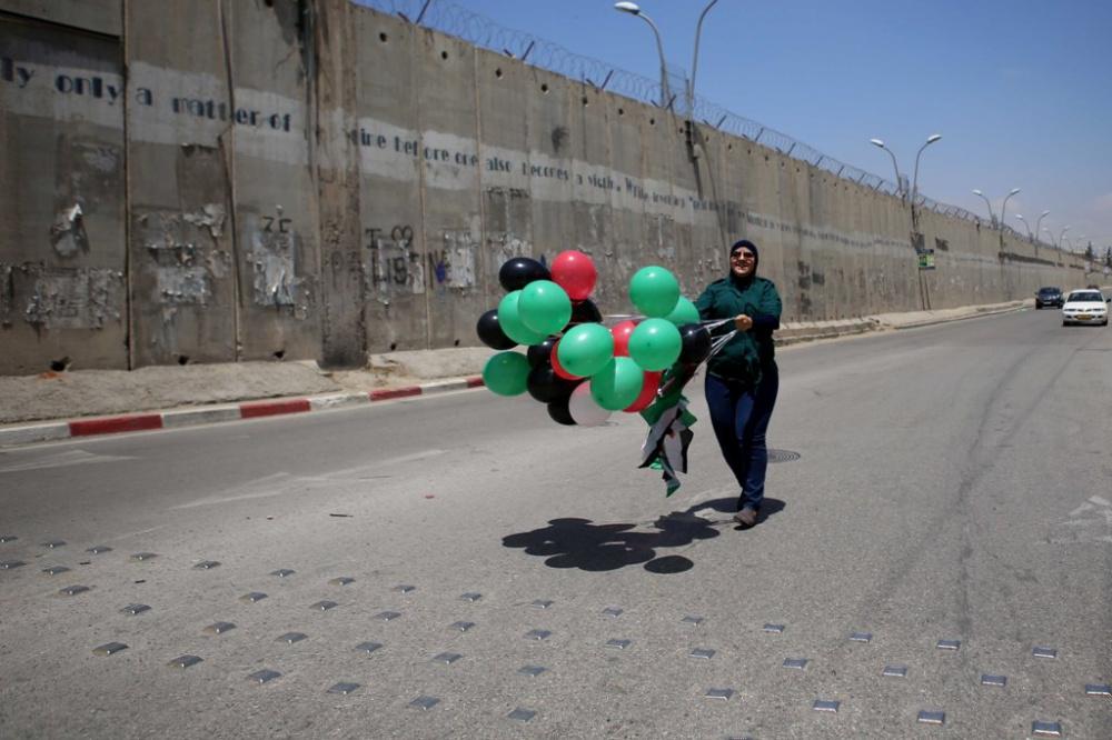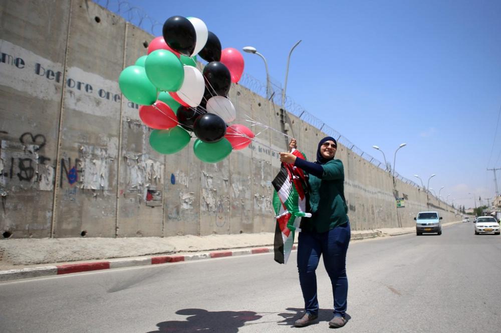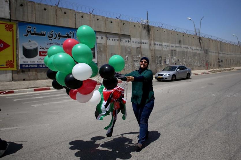 فلسطينيون يطلقون "بالونات" تجاه مدينة القدس من بلدة الرام ضمن حملة " ارفع علمك ..هذا وطنك"
