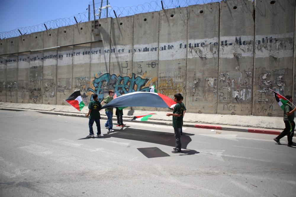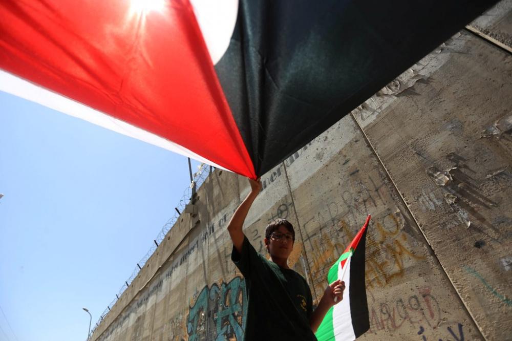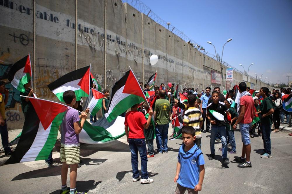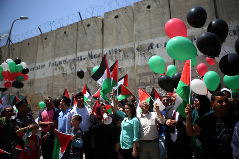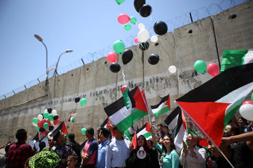 فلسطينيون يطلقون "بالونات" تجاه مدينة القدس من بلدة الرام ضمن حملة " ارفع علمك ..هذا وطنك"