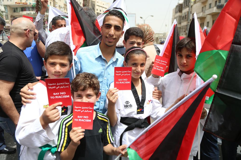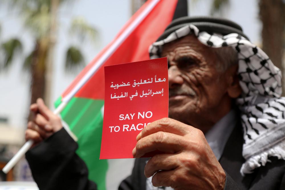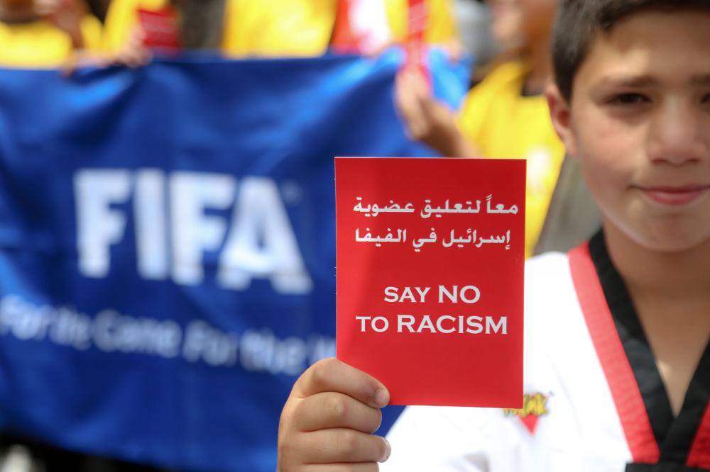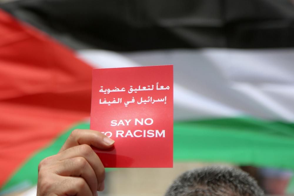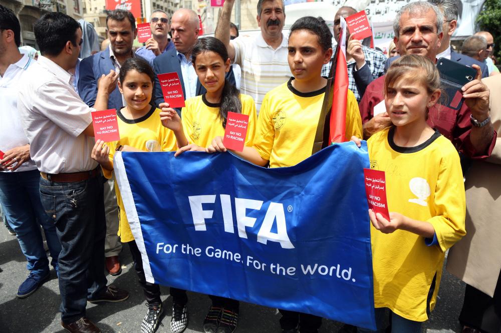 وقفة تضامنية لدعم التوجه لطرد اسرائيل من الفيفا وسط رام الله