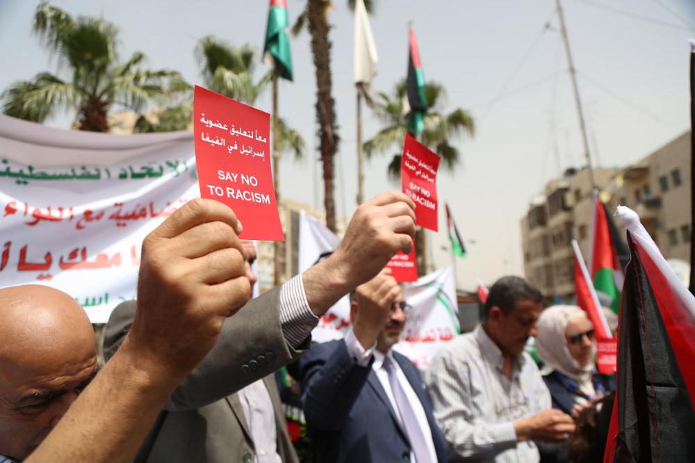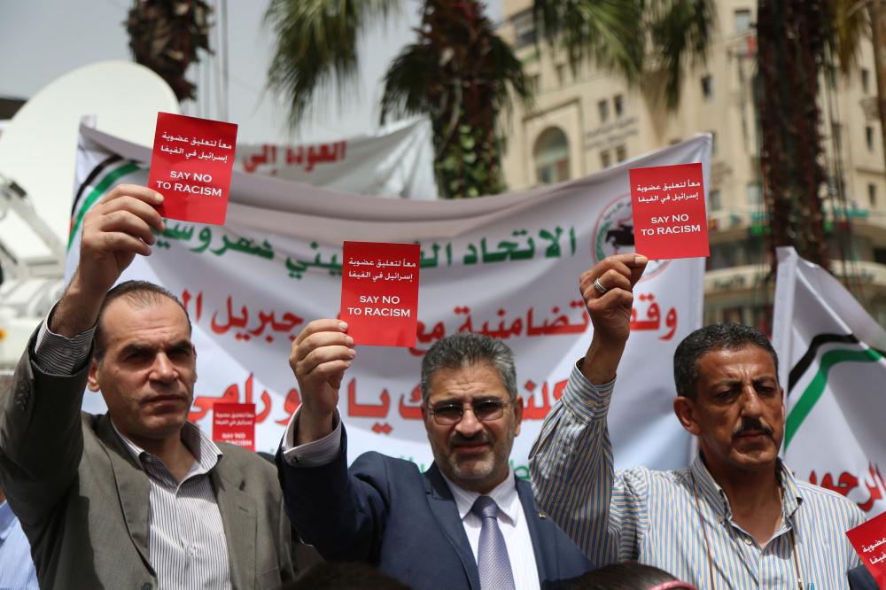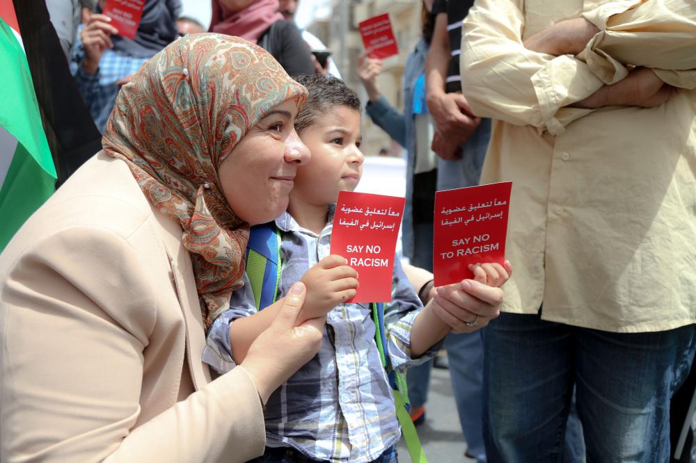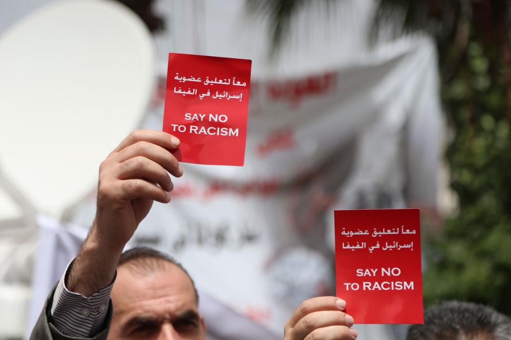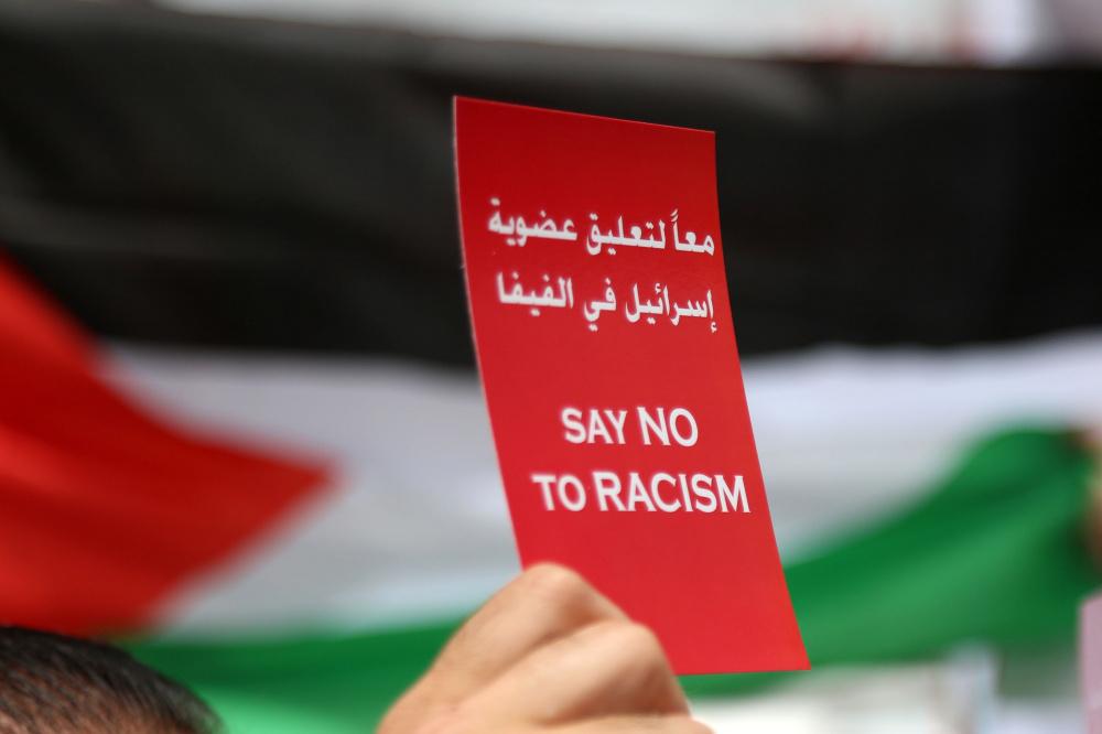 وقفة تضامنية لدعم التوجه لطرد اسرائيل من الفيفا وسط رام الله