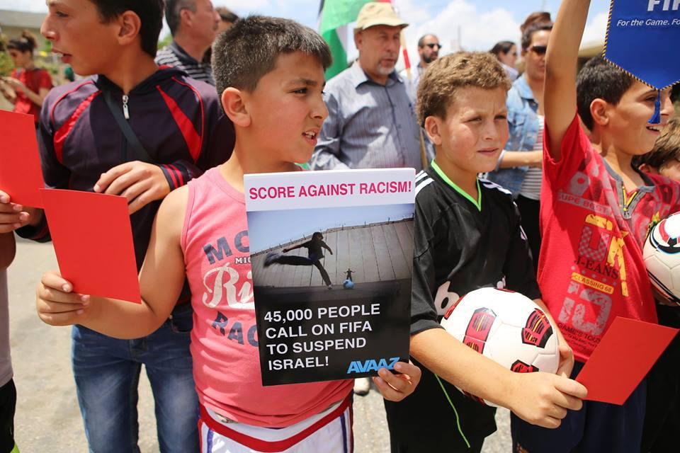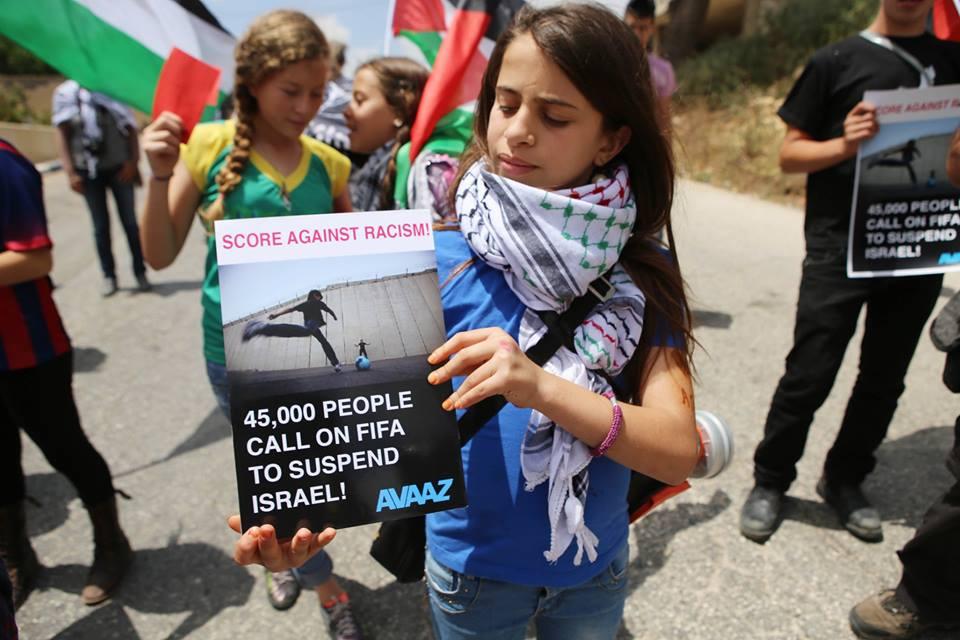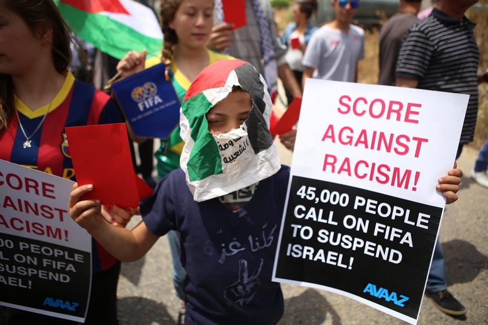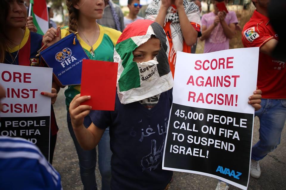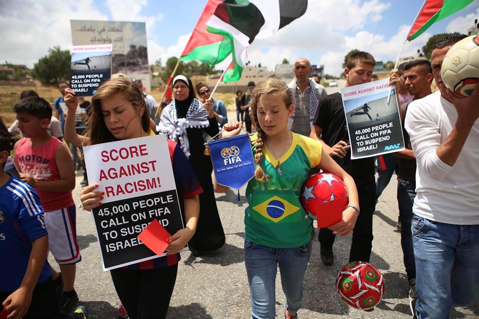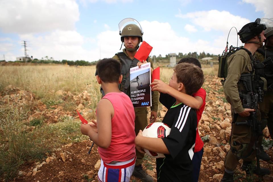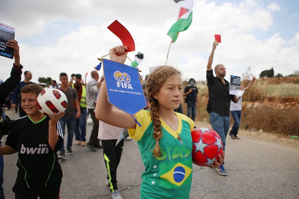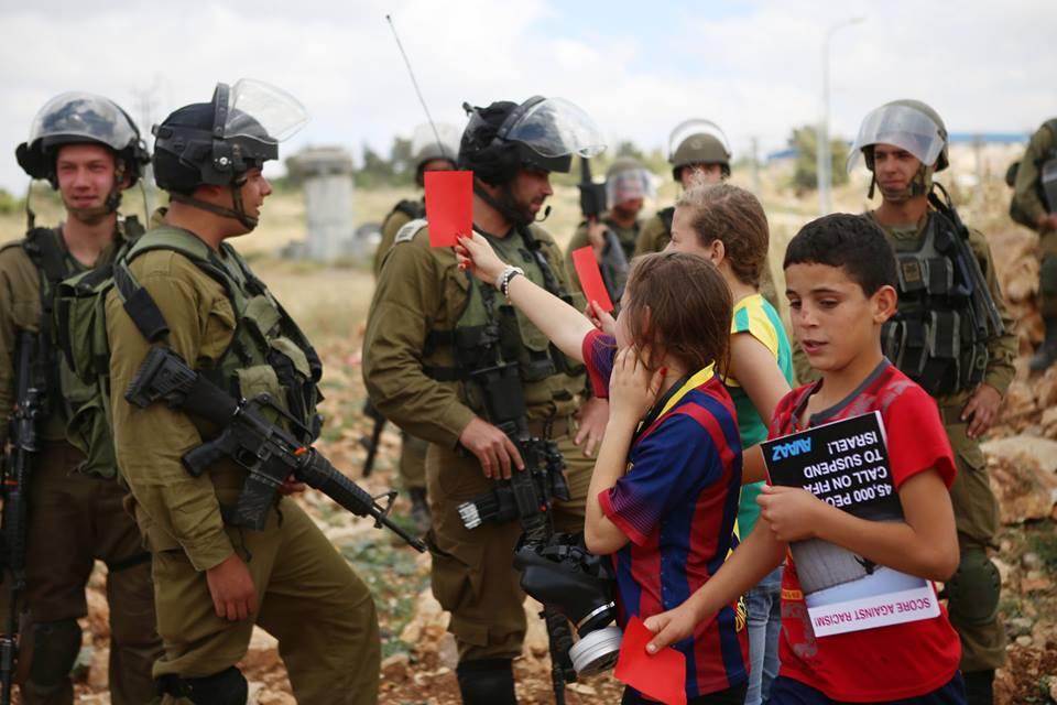 النبي صالح: نشطاء يرفعون البطاقات الحمراء دعما لوقف عضوية الاحتلال في الفيفا