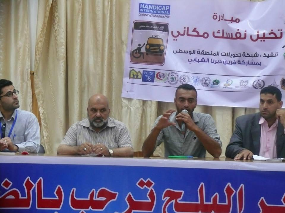اطلقت شبكة التحويلات في المنطقة الوسطى بمشاركة فريق ديرنا الشبابي مبادرة بعنوان " تخيل نفسك مكاني" في قاعة بلدية دير البلح بمشاركة عدد من ممثلي المؤسسات الأهلية والحكومية ورؤساء البلديات وعدد من نشطاء المجتمع المدني .