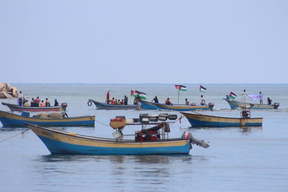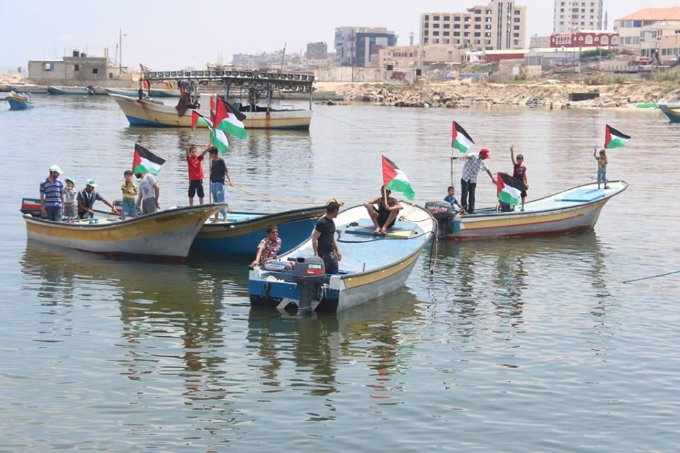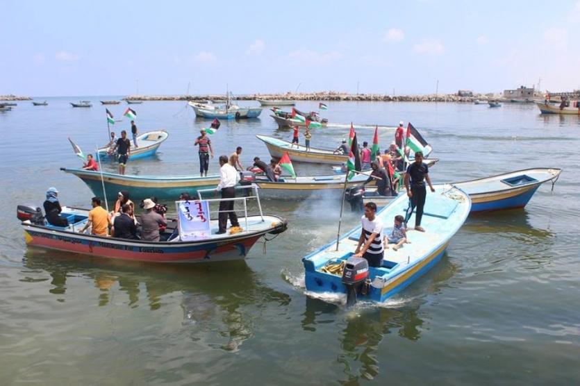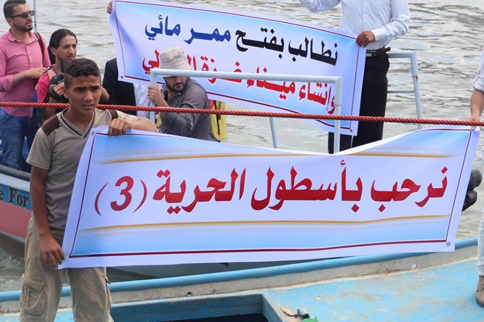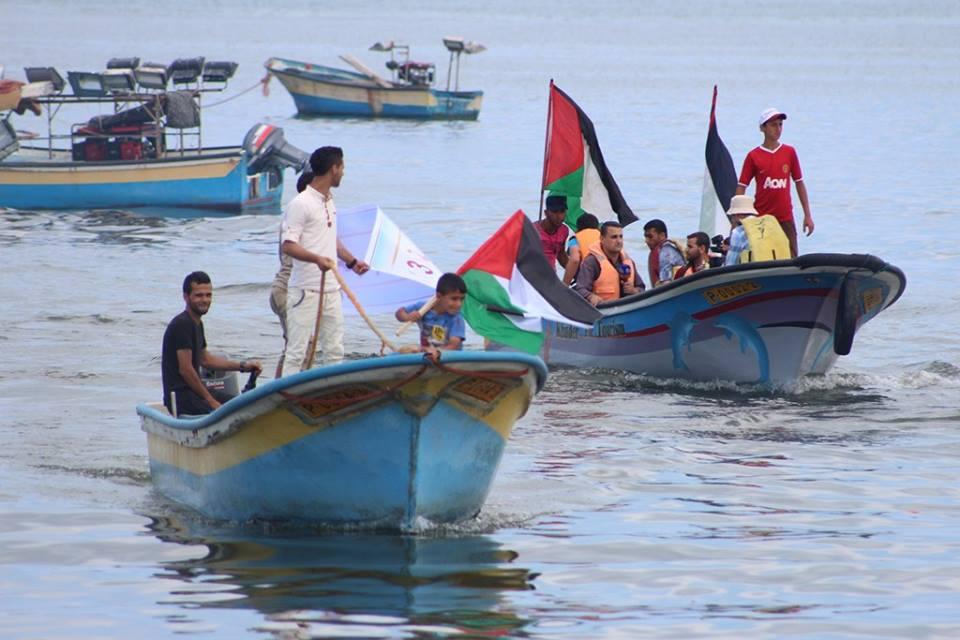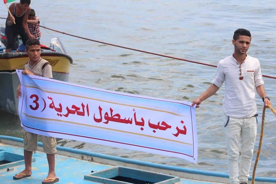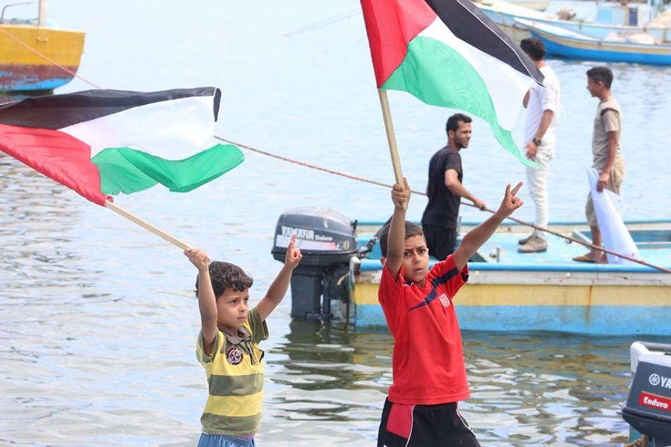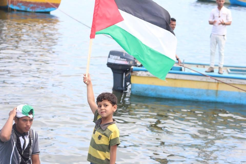 مسيرة بالمراكب البحرية داخل ميناء غزة استقبالا لأسطول الحرية