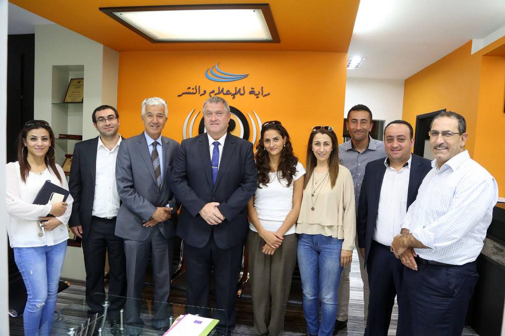 رحب رئيس مجلس ادارة شركة رايــة للإعلام والنشر بسام ولويل بزيارة القنصل البريطاني العام اليستر مكفيل لمقر شبكة رايــة الإعلامية برام الله.