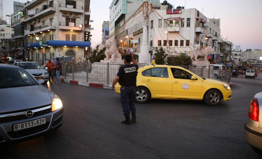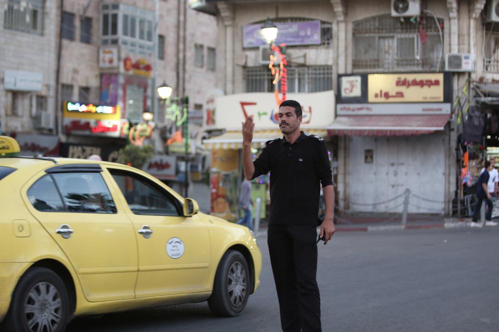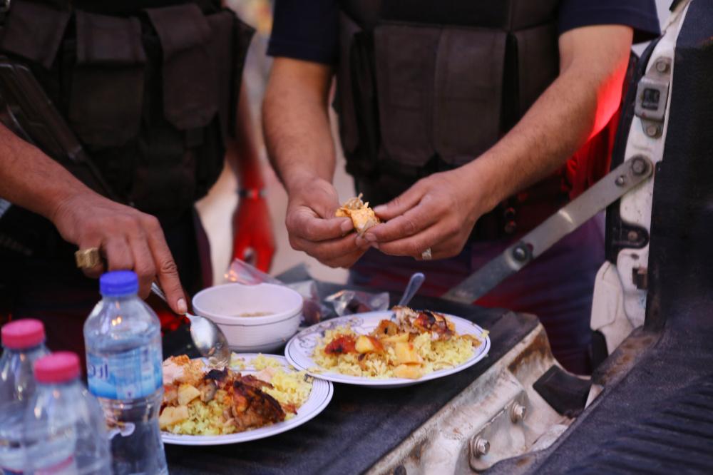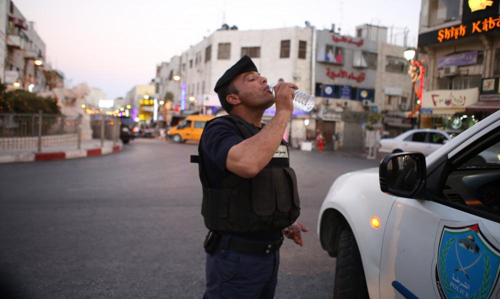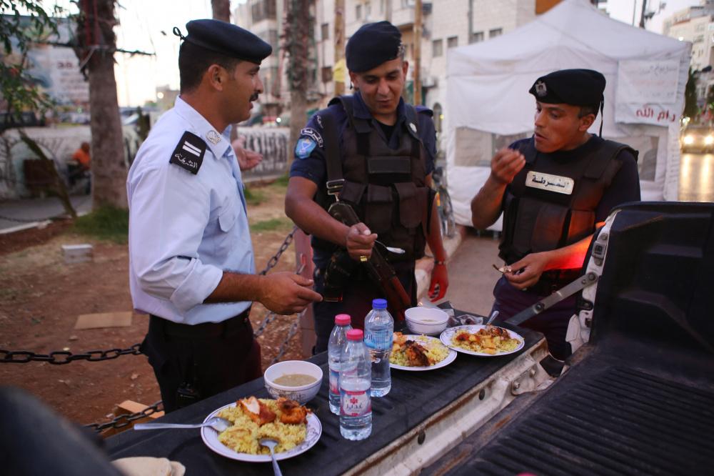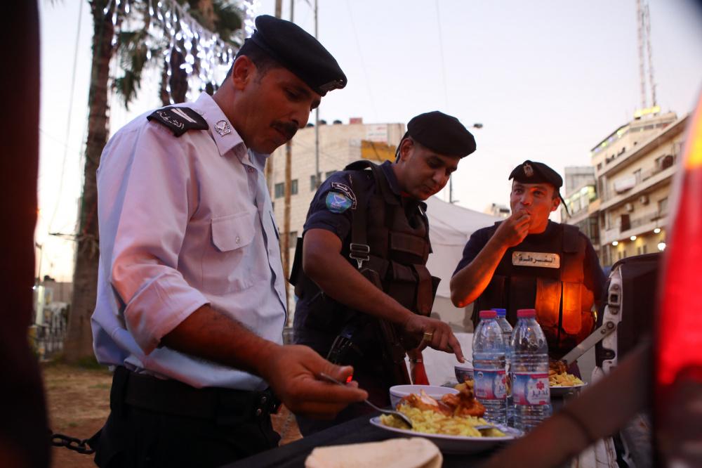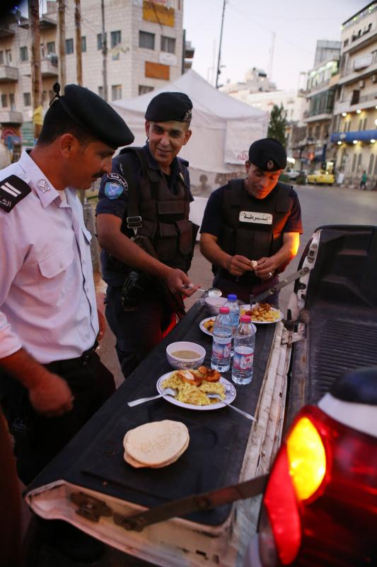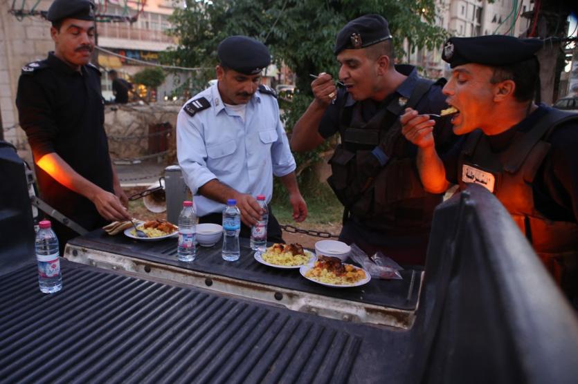 افراد من الشرطة يتناولون افطارهم وسط رام الله