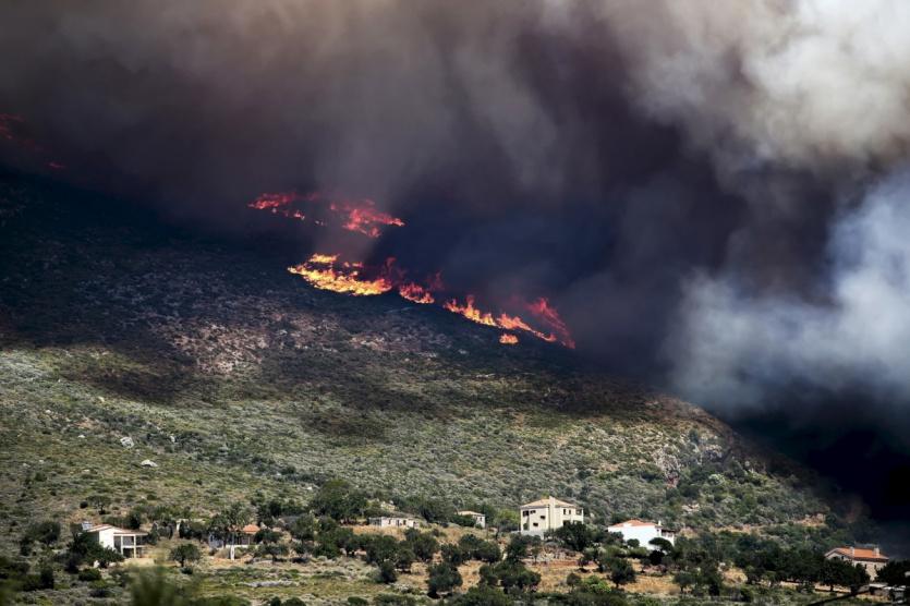 وكالات- أجبرت حرائق الغابات التي اندلعت جنوب اليونان يوم الجمعة 17 تموز السكان على الفرار من منازلهم.