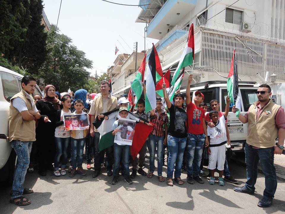 اعتصام أمام مقر الامم المتحدة بدمشق تضامنا مع شعبنا واستنكارا لجريمة دوما