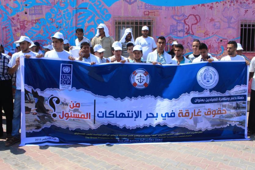 أطلق شبان ونشطاء وحقوقيين في غزة اليوم الخميس امام نقابة الصيادين بميناء غزة البحري، حملة بعنوان "حقوق غارقة في بحر الانتهاكات.. من المسؤول؟"، بتمويل من برنامج الأمم المتحدة الانمائي، بهدف دعم ومناصرة الصيادين الفلسطينيين الذين بتعرضون لانتهاكات متواصلة من قبل الاحتلال والتركيز على تطبيق العدالة في توزيع المساعدات من نقابتهم بغزة.