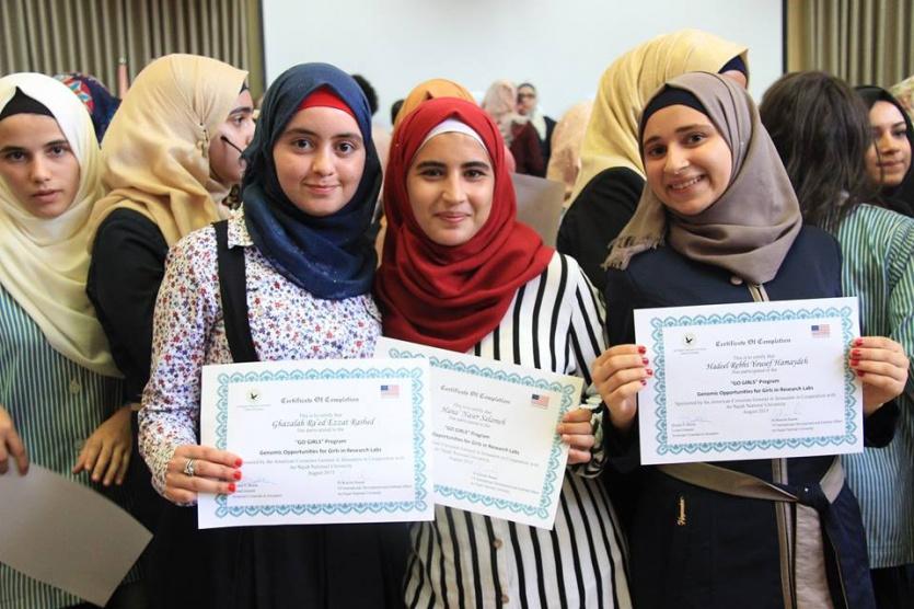 حفل تخريج جامعة النجاح والقنصلية الأمريكية في القدس لطالبات النادي العلمي "Go Girls"