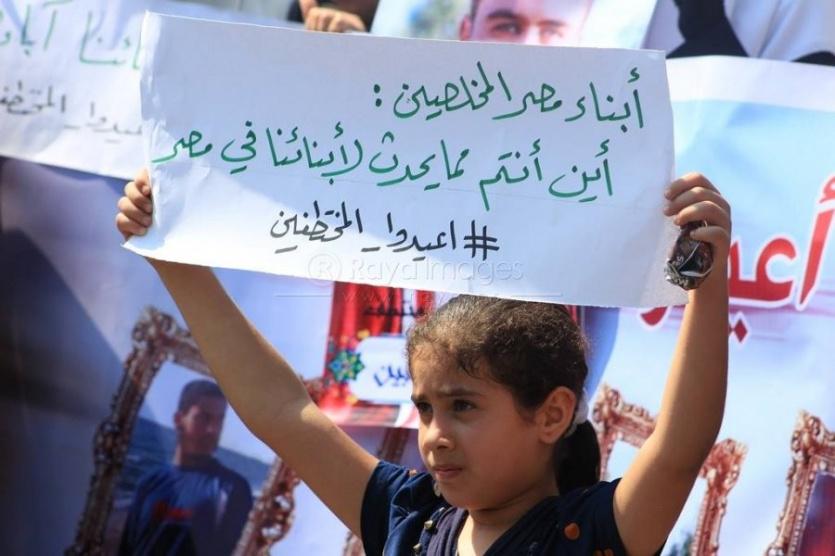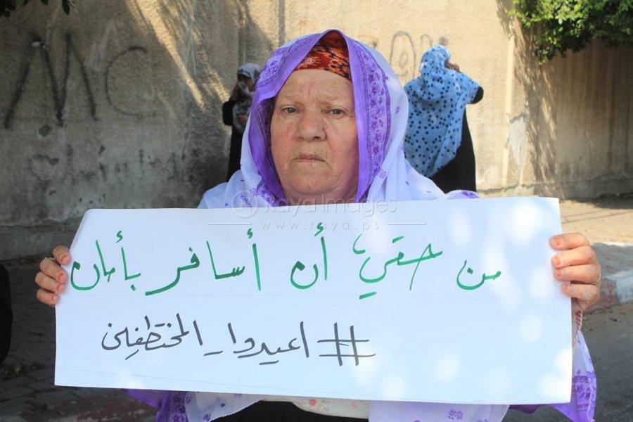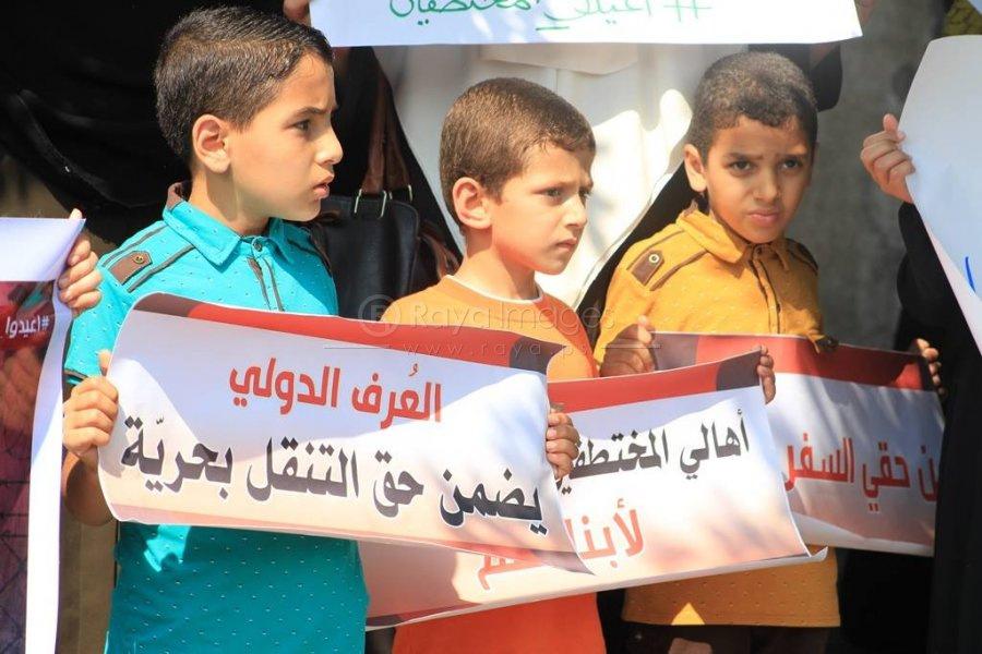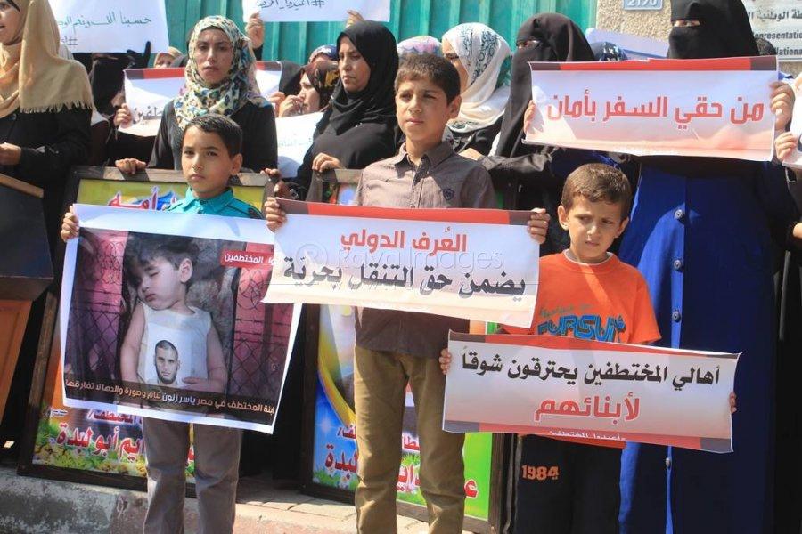 بالصور.. اعتصام لأهالي "المختطفين الأربعة" في مصر أمام سفارتها بغزة