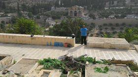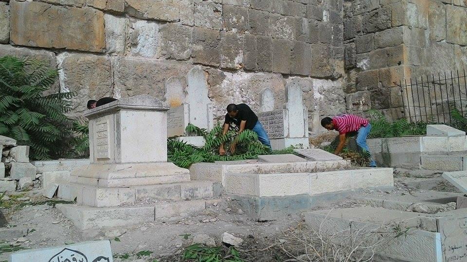 شباب سلوان في القدس المحتلة ينظفون مقبرة باب الرحمة
