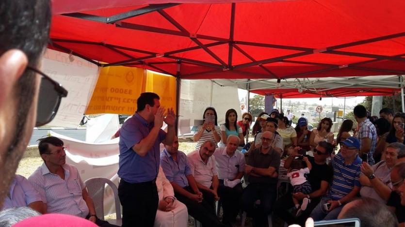 خيمة الاعتصام تضامنا مع المدارس الاهلية مقابل وزارة المعارف في الناصرة
