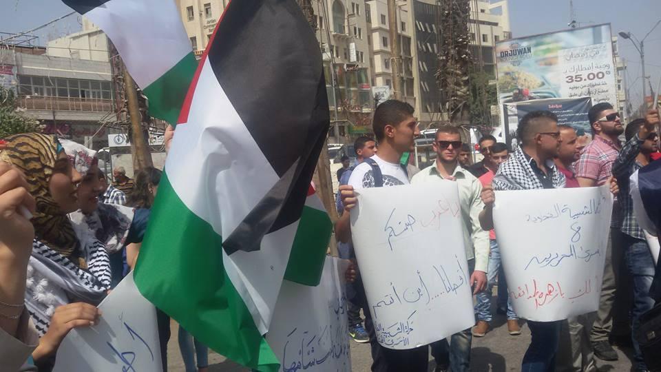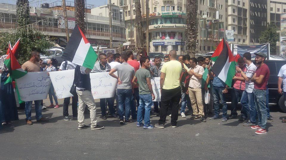 تظاهرة منددة بالاعتداءات التي يتعرض لها المسجد الأقصى من قبل الاحتلال وسط مدينة رام الله اليوم.