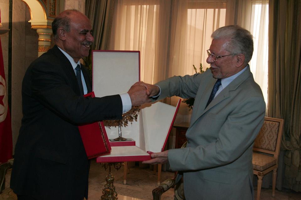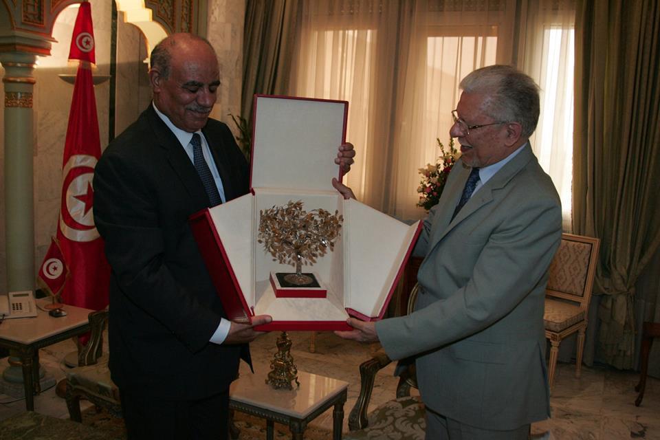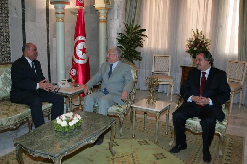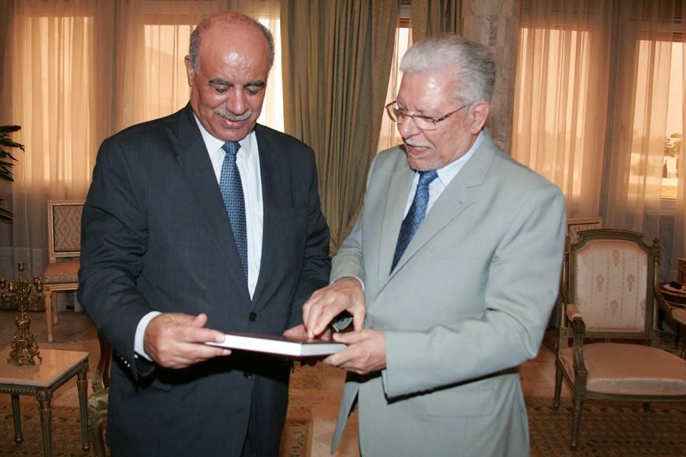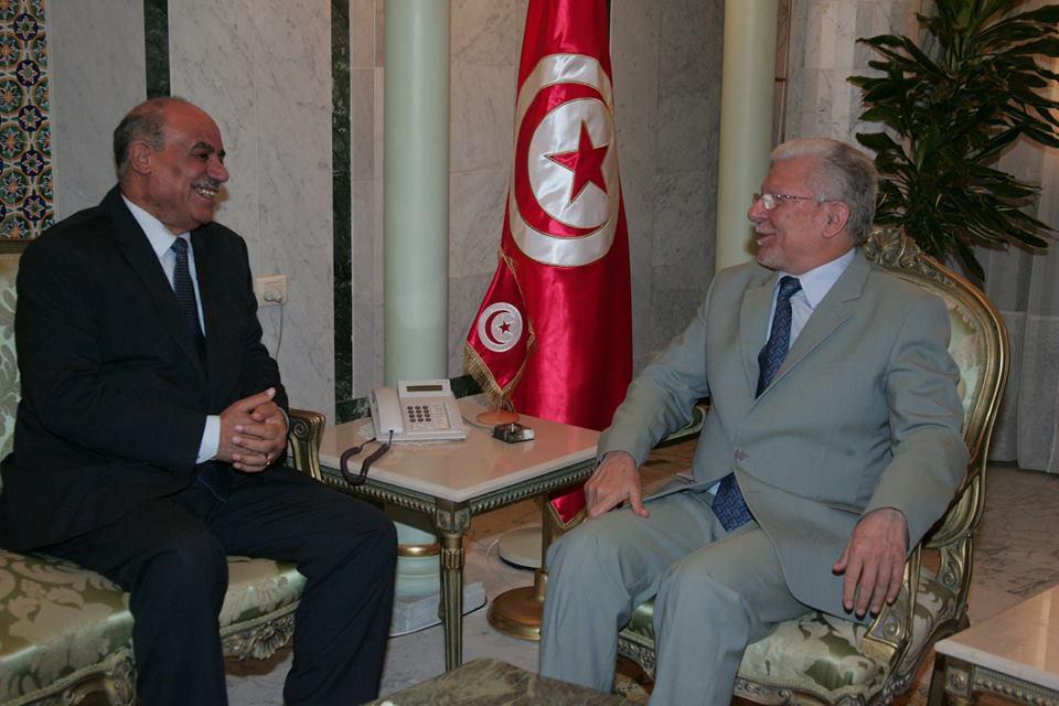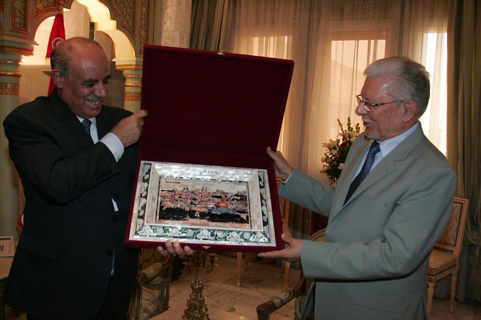 الطيب البكوش وزير الخارجيه التونسي يستقبل سفير فلسطين سلمان الهرفي بمناسبة انتهاء مهامه بتونس