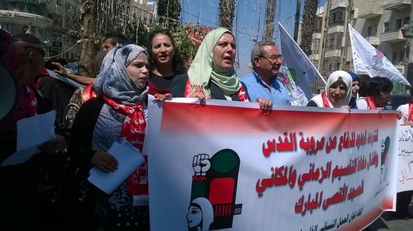"العمل النسائي" تنظم وقفة احتجاجية ضد الهجمة الاسرائيلية على الاقصى
