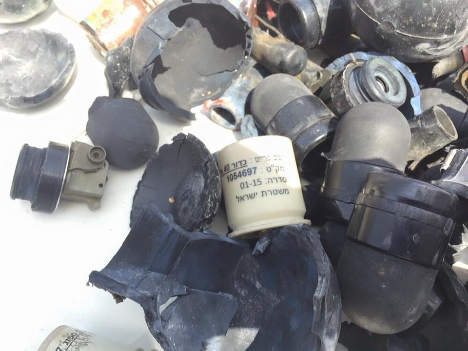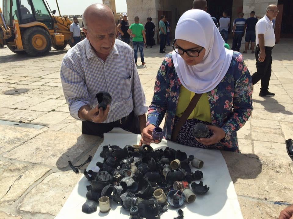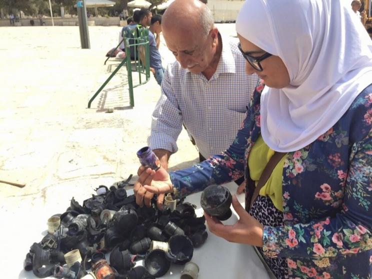 فلسطينيان يستعرضان قنابل الاحتلال في باحات الاقصى