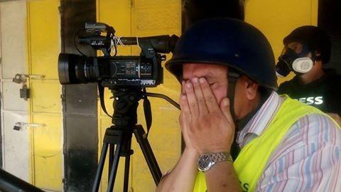 اختناق الصحفيين من الغاز السام التي اطلقته قوات الاحتلال عند حاجز قلنديا شمال القدس المحتله18/9/2015