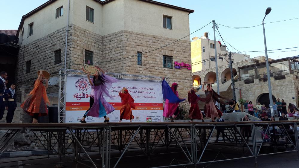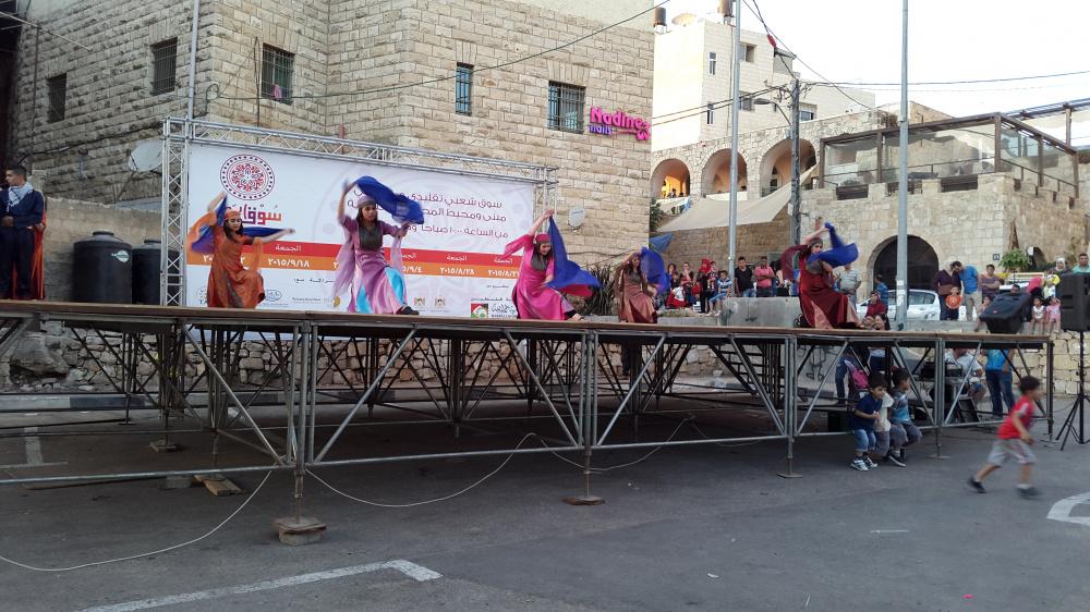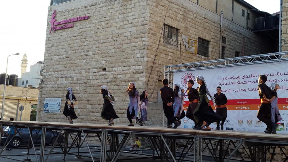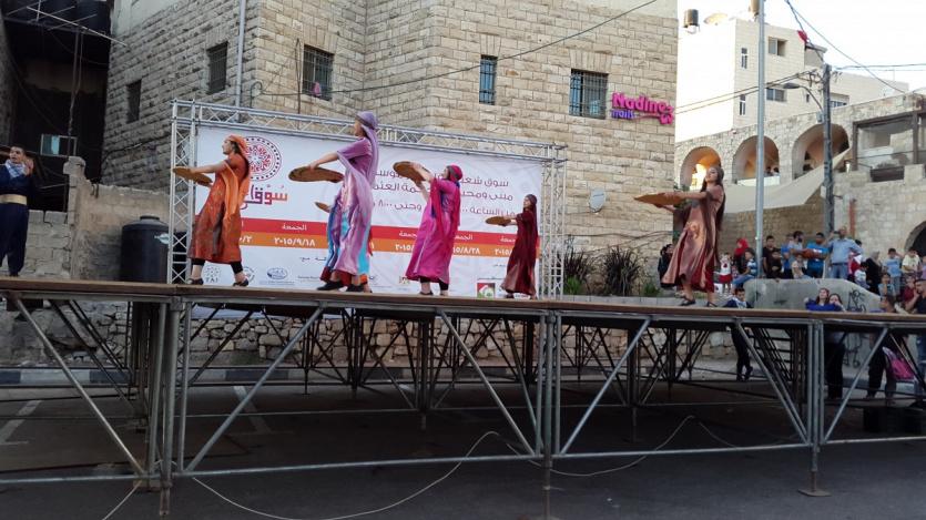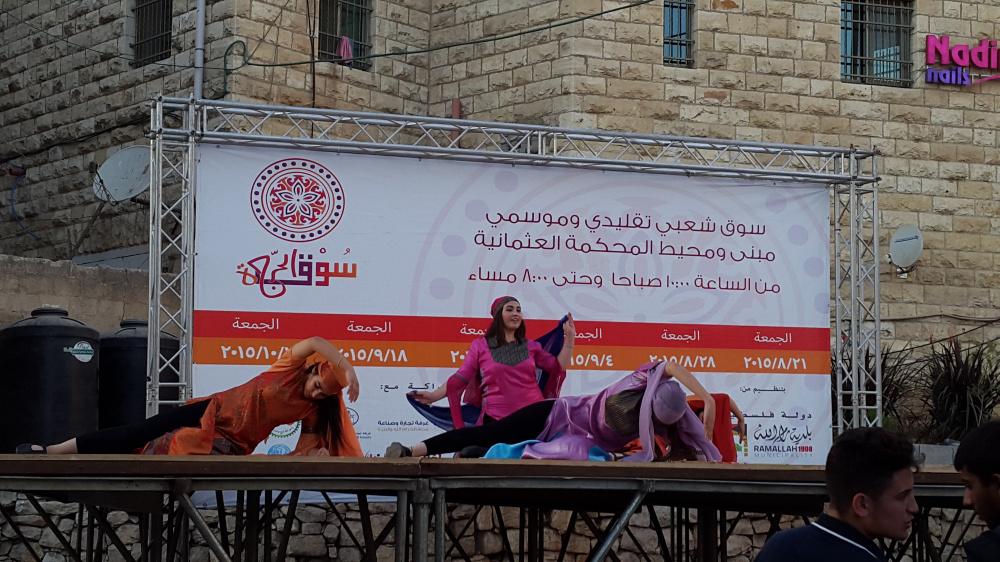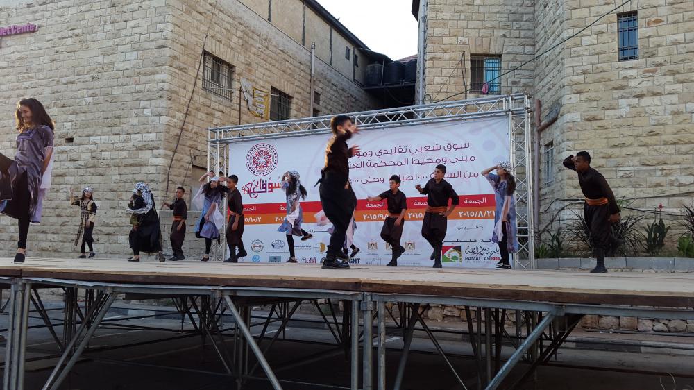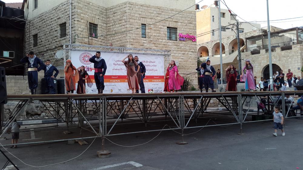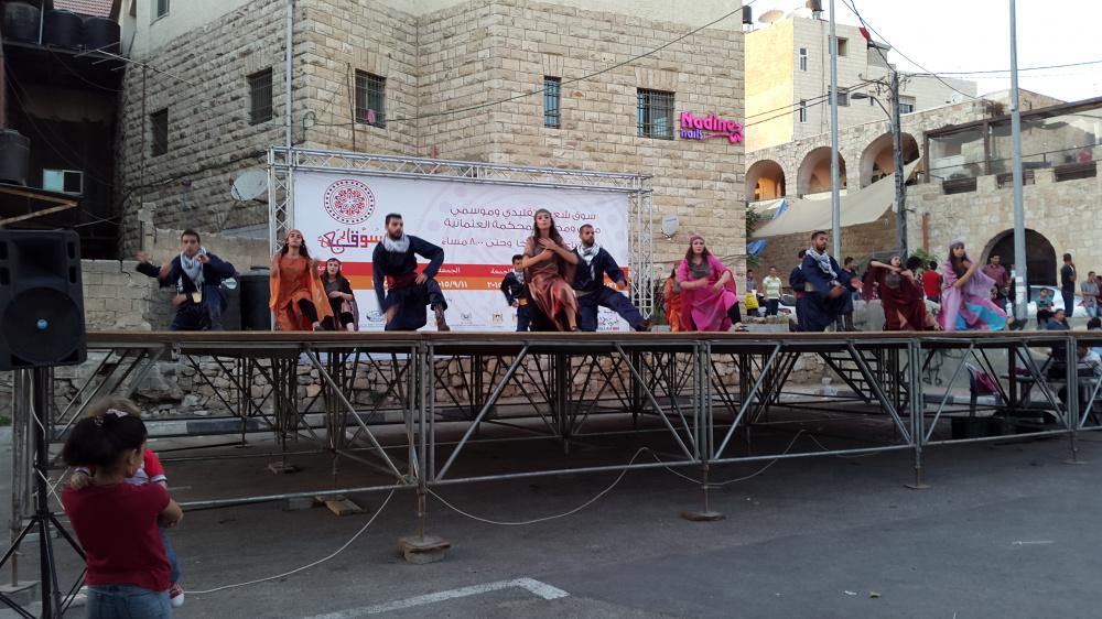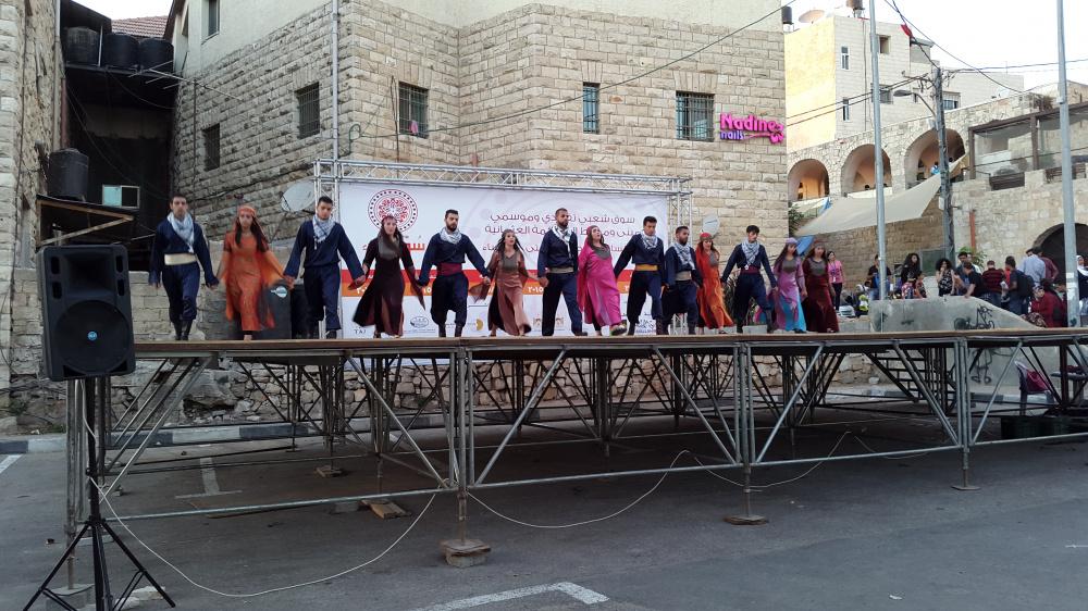 فرقة الهدف للدبكة الشعبية و فرقة كنعان للتراث والفنون الشعبية في سوق الحرجة رام الله