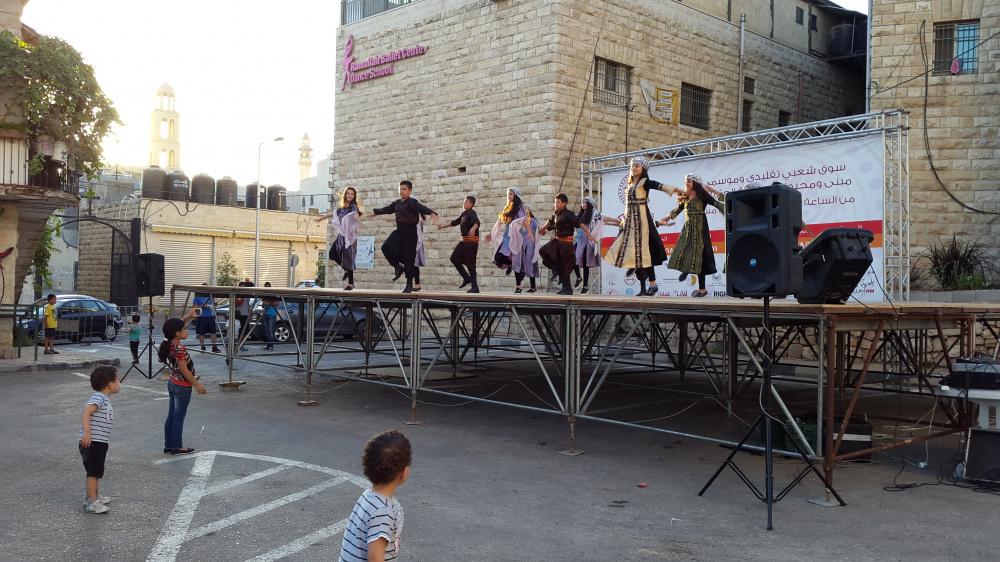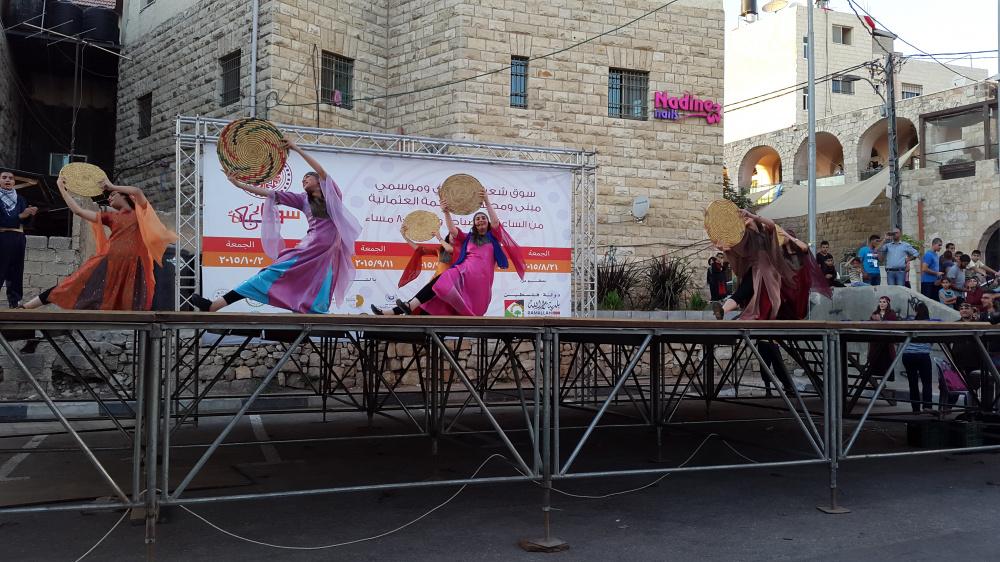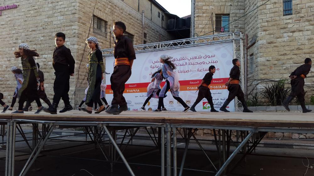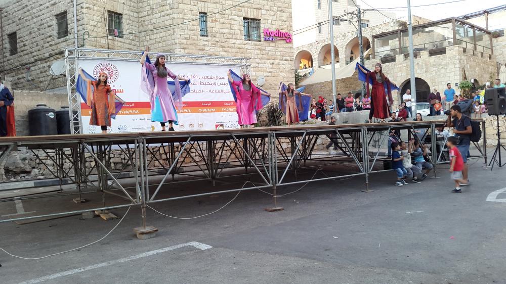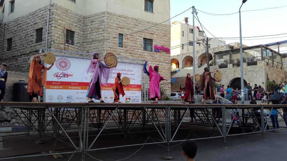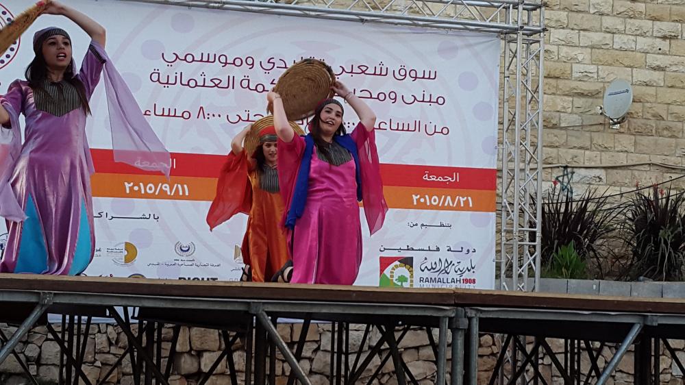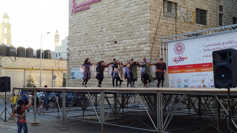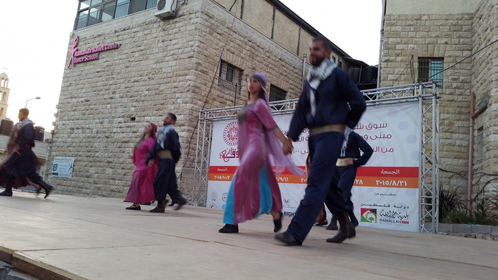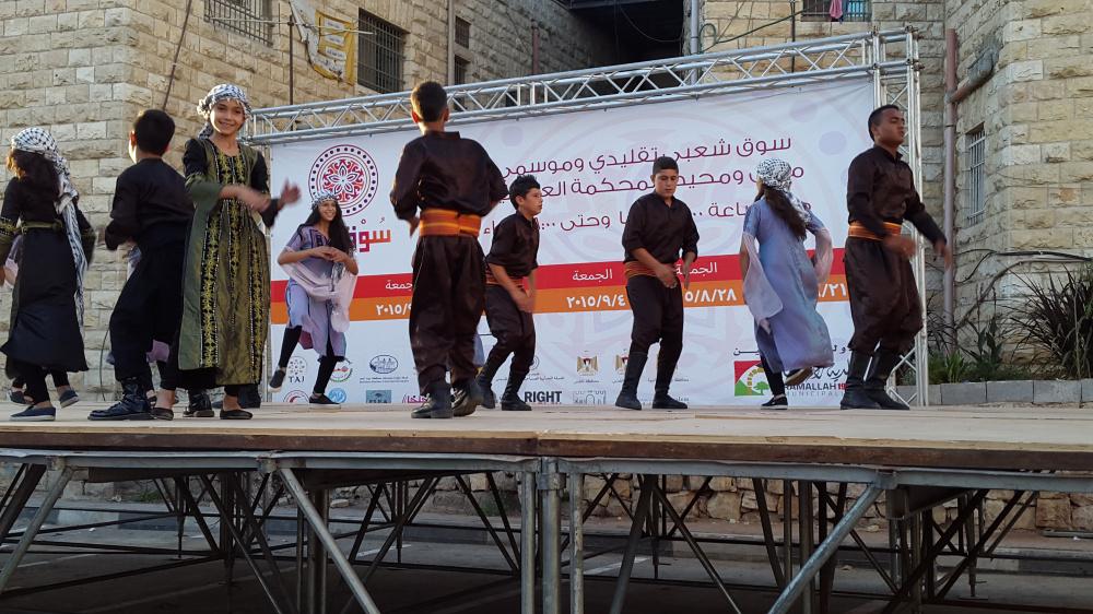 فرقة الهدف للدبكة الشعبية و فرقة كنعان للتراث والفنون الشعبية في سوق الحرجة رام الله