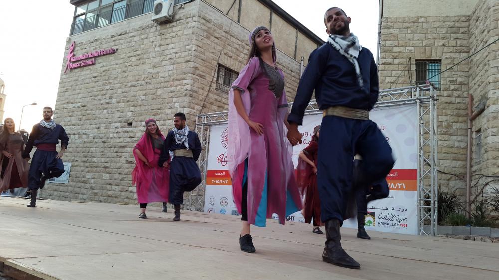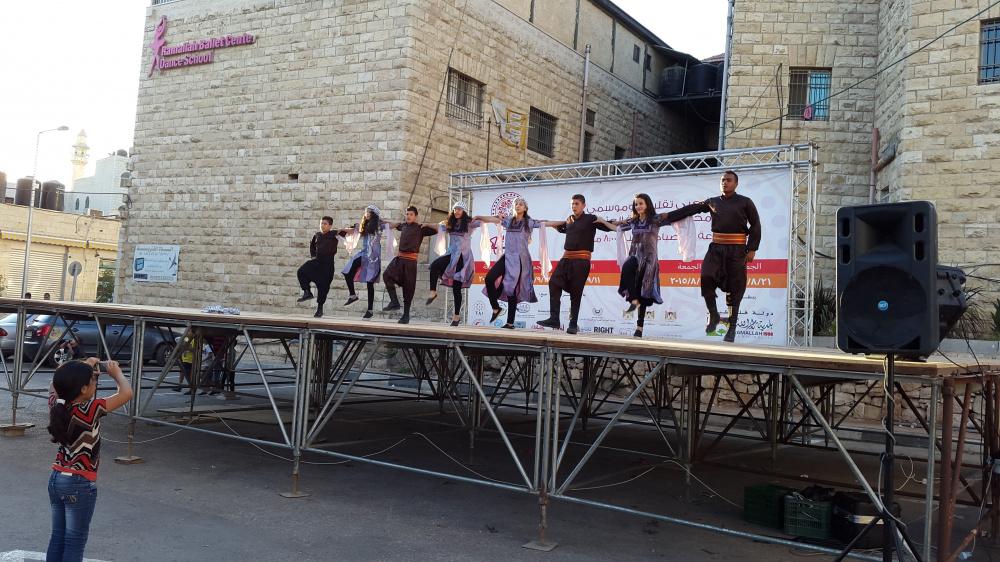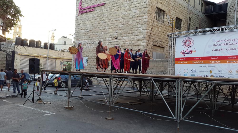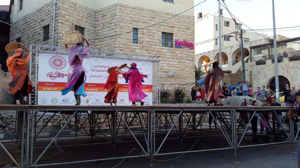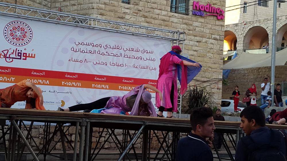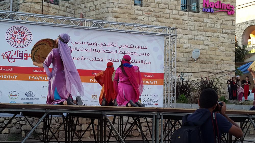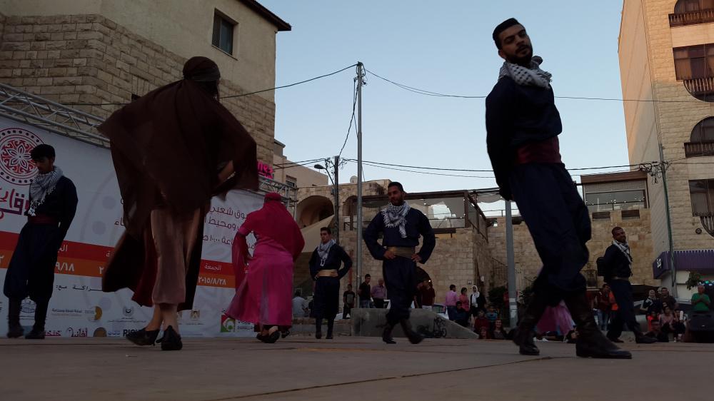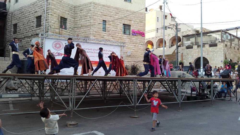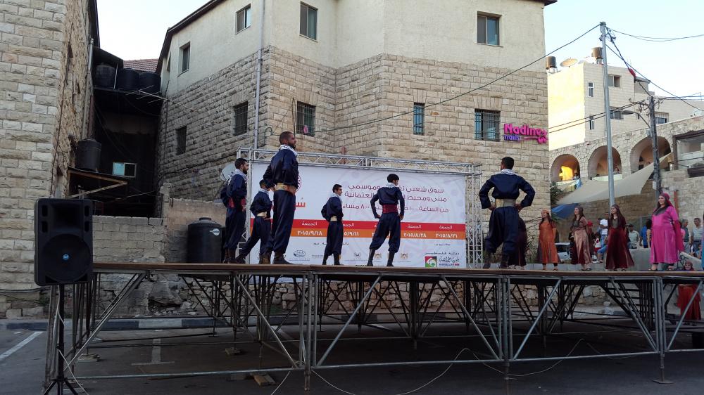 فرقة الهدف للدبكة الشعبية و فرقة كنعان للتراث والفنون الشعبية في سوق الحرجة رام الله
