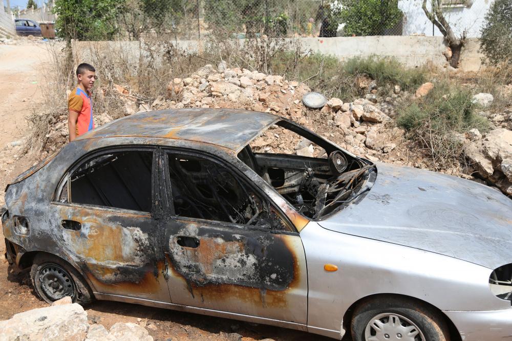 مستوطنون يحرقون سيارة فلسطينية في بيتللو قرب رام الله