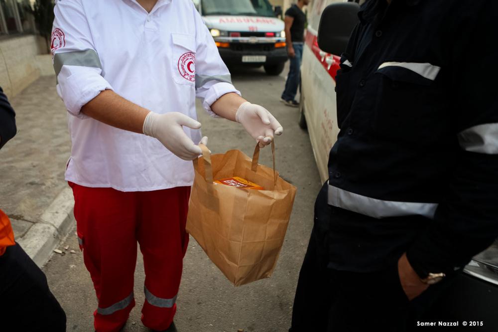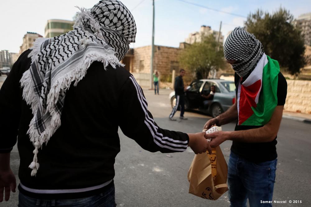 بالصور : مطاعم رام الله تتبرع بوجبات طعام للمتظاهرين والمسعفين والصحفيين قرب مدخل البيرة الشمالي