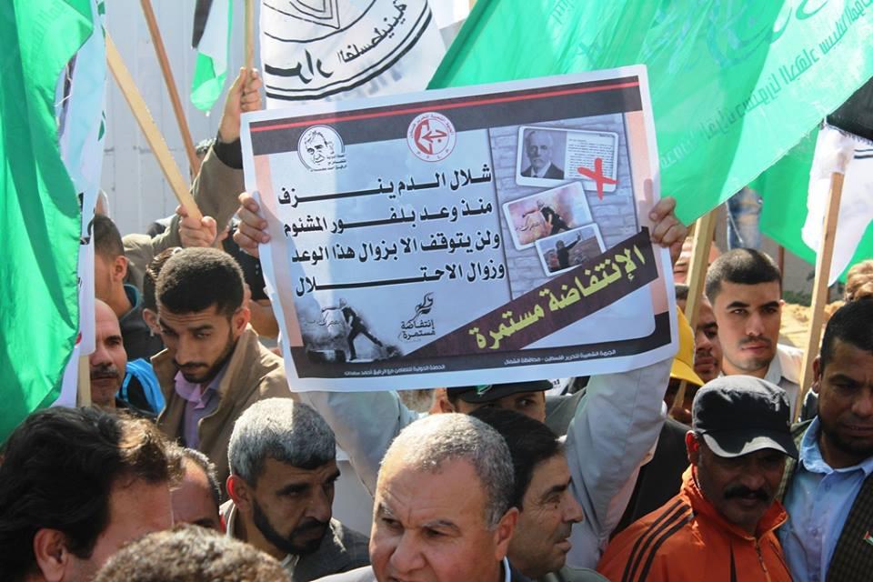 نظمت الفصائل بغزة اليوم الاثنين، مسيرة في ذكرى وعد بلفور دعما للهبة الشعبية في القدس والضفة الغربية والتي انطلقت من أمام مقر الصليب الأحمر الدولي في مدينة غزة حتى مبنى الأمم المتحدة غرب مدينة غزة.
