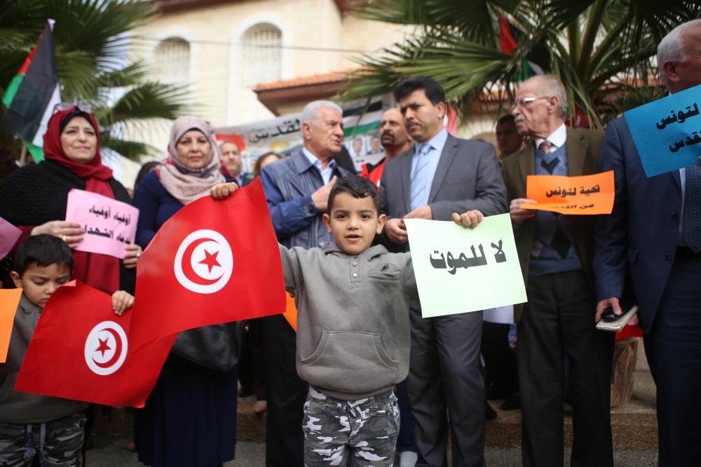 وقفة تضامنية أمام سفارة تونس في رام الله ضد الإرهاب