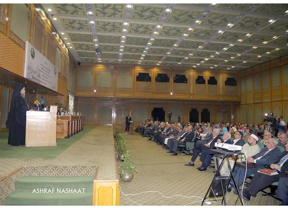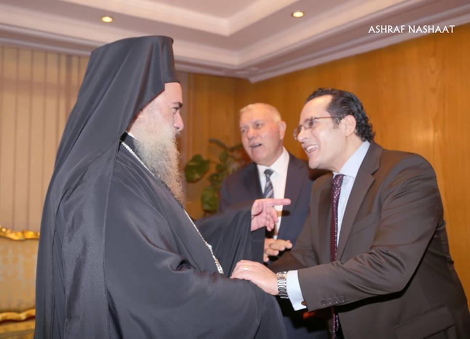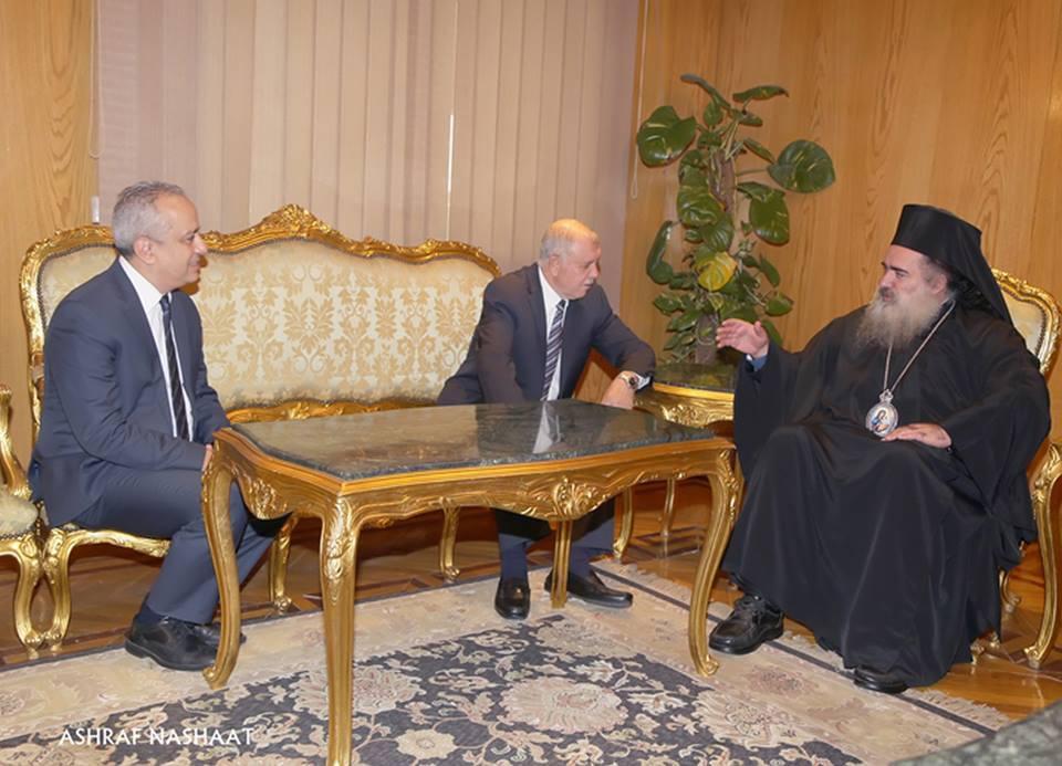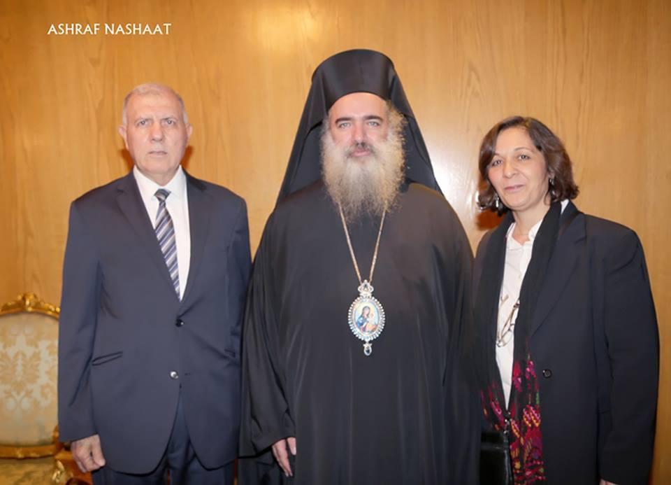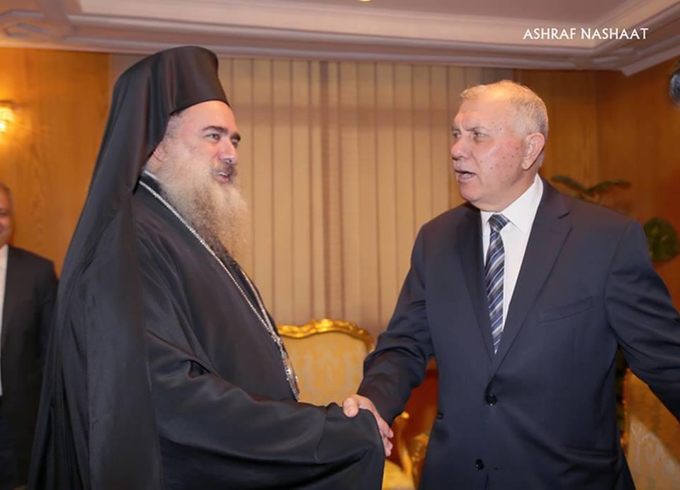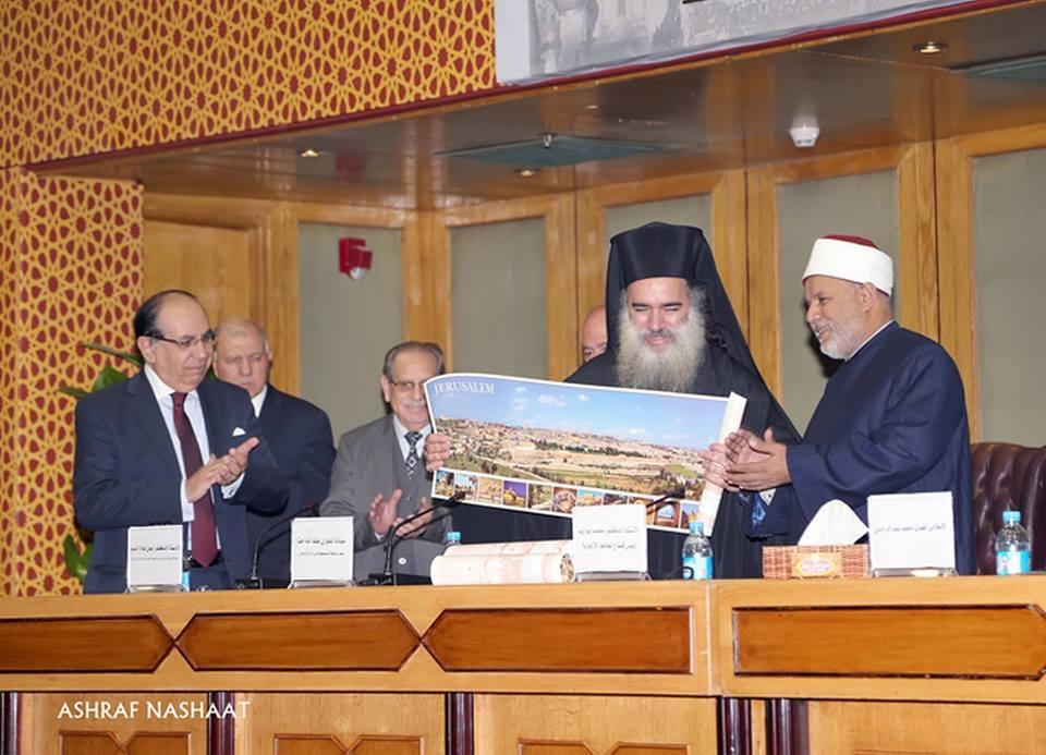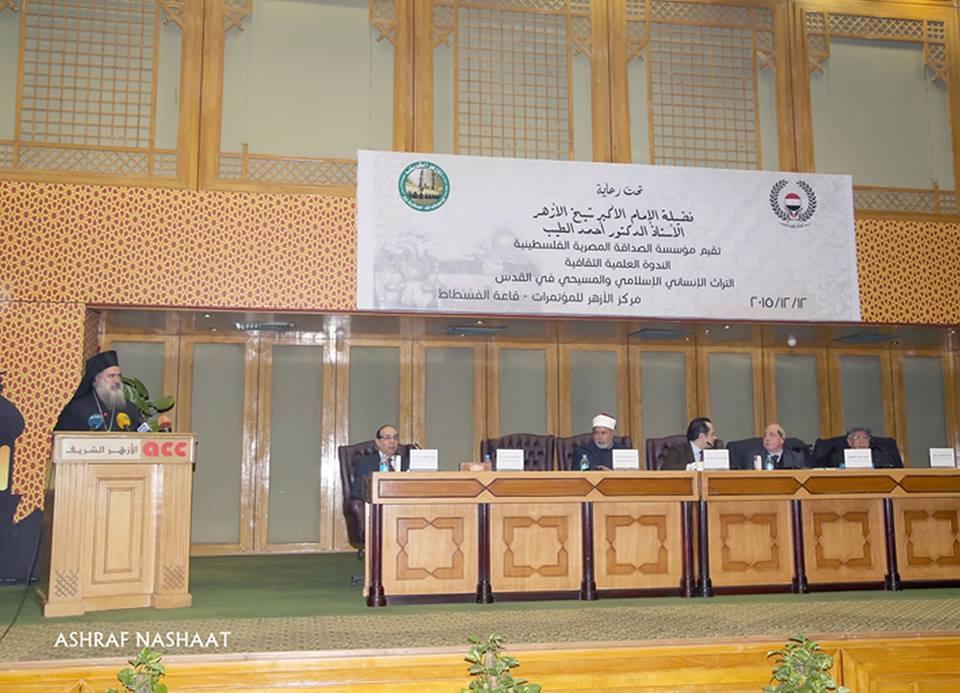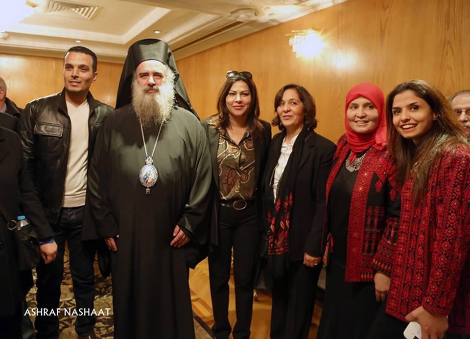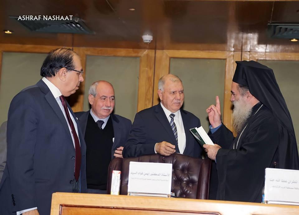 المطران عطا الله حنا خلال زيارته مؤتمر عن القدس في مدينة القاهرة