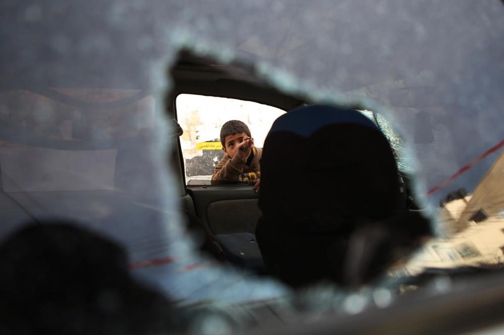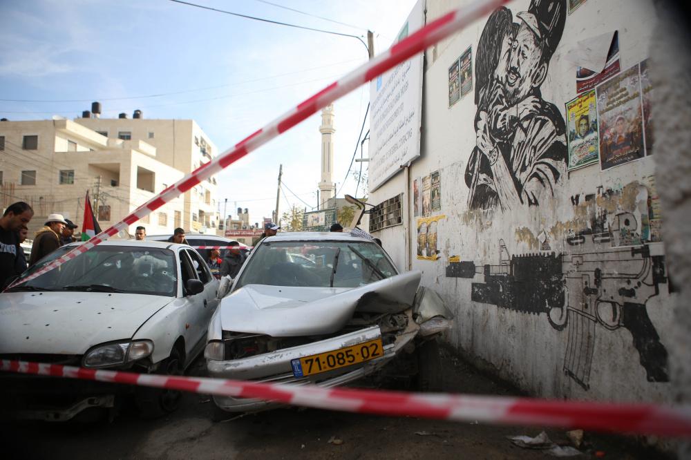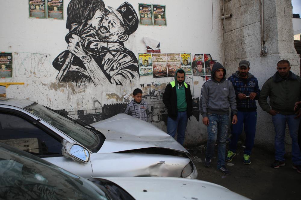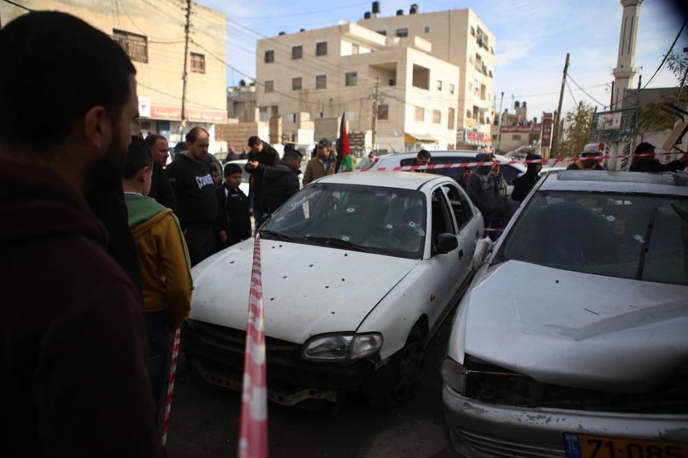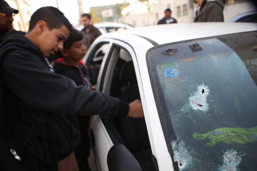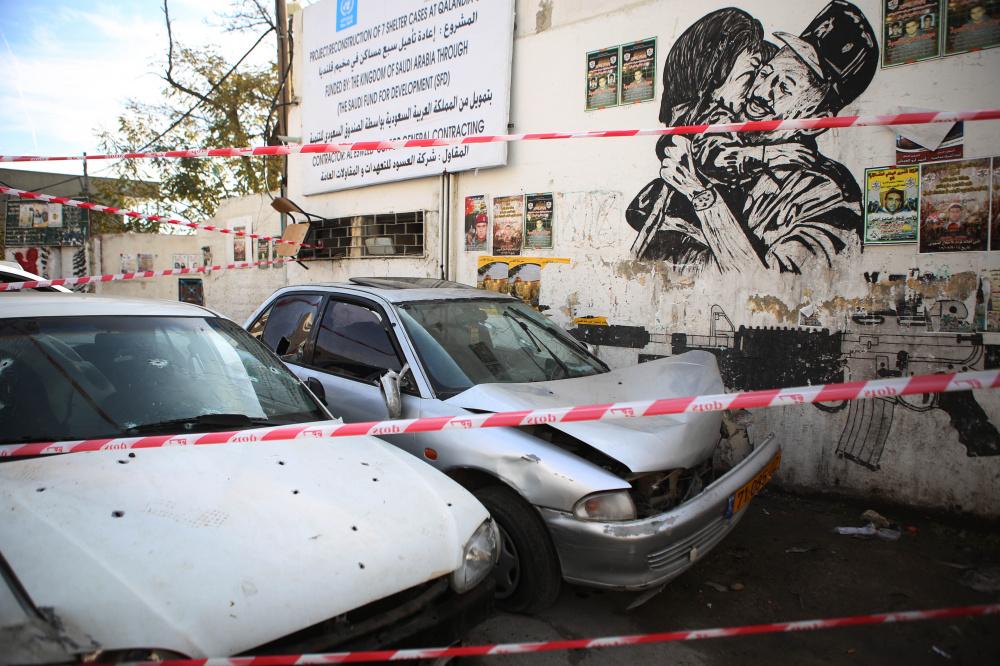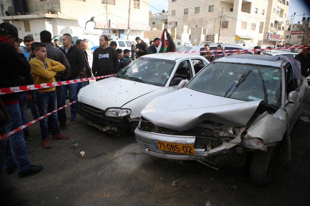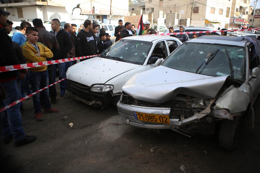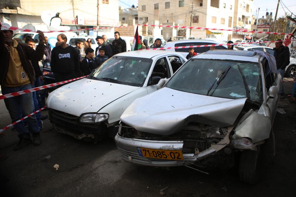 صور للسيارتين اللتين كان يستقلهما الشهيدان احمد جحاجحة وحكمت حمدان في مخيم قلنديا قبل اطلاق الرصاص عليهما ما ادى الى استشهادهما واصابة شاب ثالث كان مع احدهما...تظهر الصور تعرض احدى السيارتين لاكثر من 20 رصاصة في الواجهة الامامية.