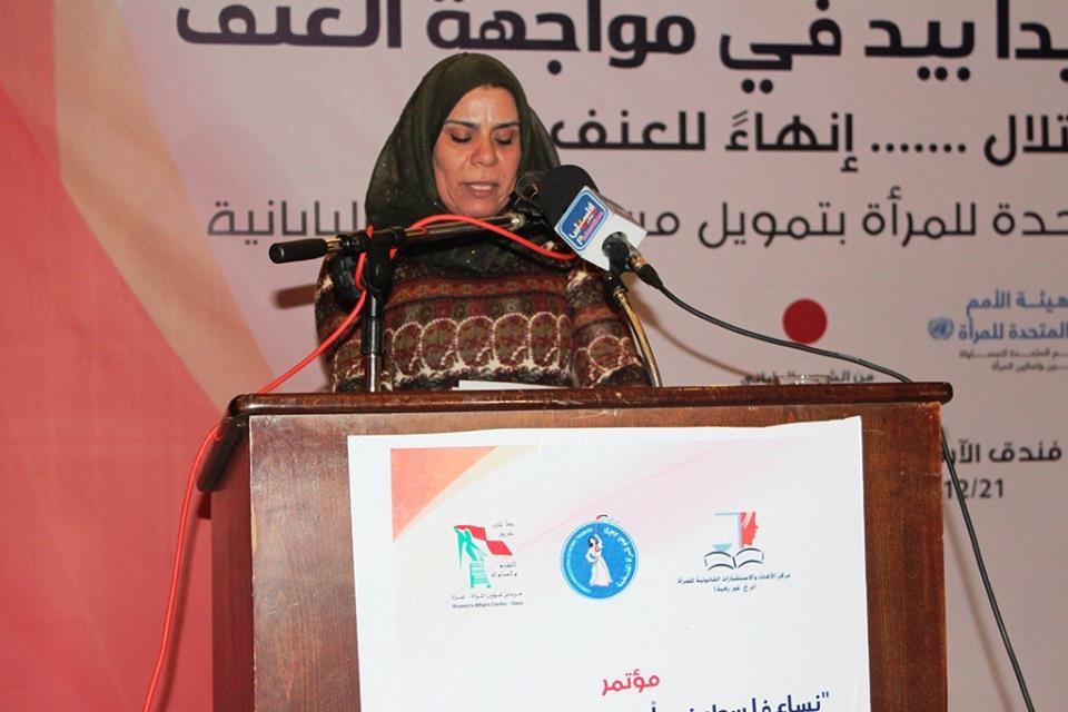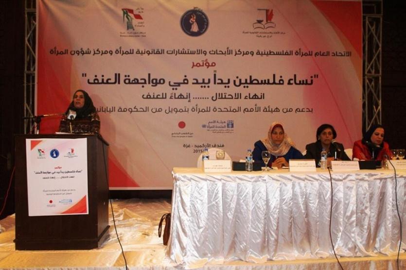 عقد الاتحاد العام للمرأة الفلسطينية ومركز الأبحاث والاستشارات القانونية للمرأة ومركز شؤون المرأة اليوم الاثنين، المؤتمر الأول من نوعه تحت عنوان" نساء فلسطين يدا بيد في مواجهة العنف"، بدعم من الأمم المتحدة والحكومة اليابانية، وحضر المؤتمر وفد كبير من نساء الضفة الغربية ضم قرابة 55 امرأة.
